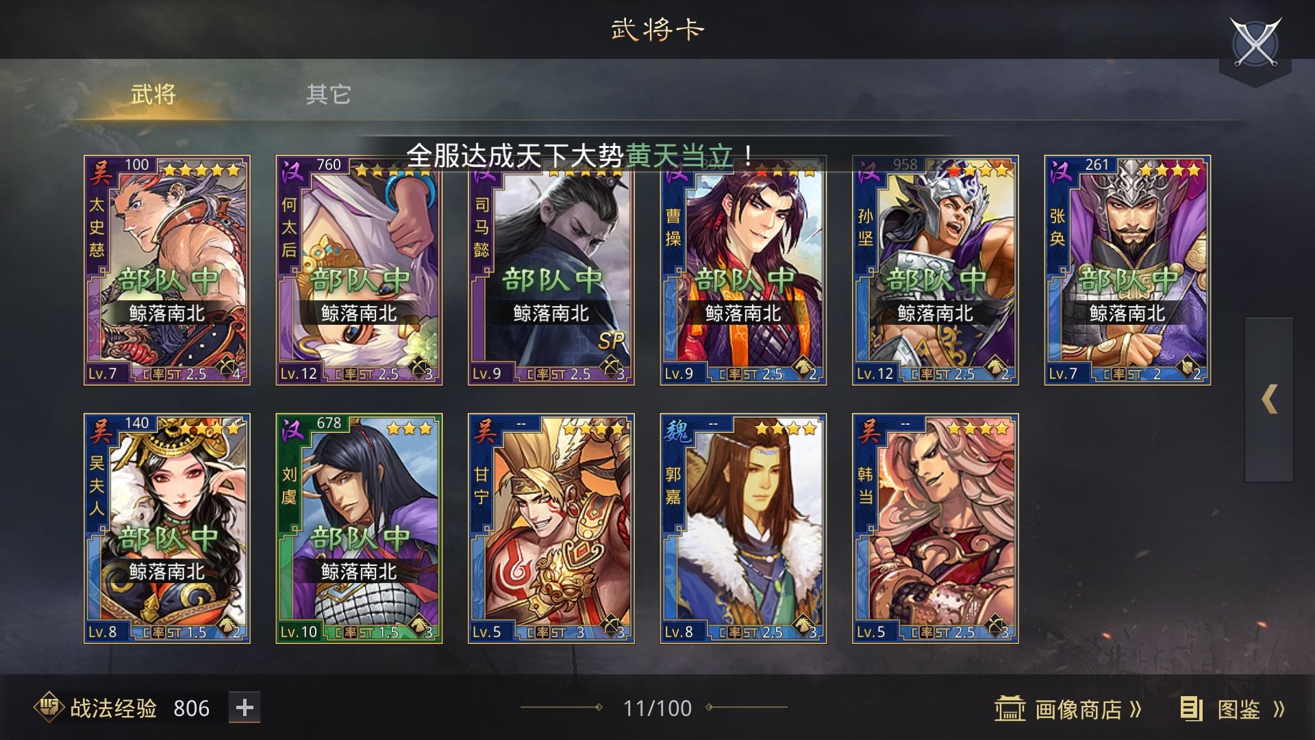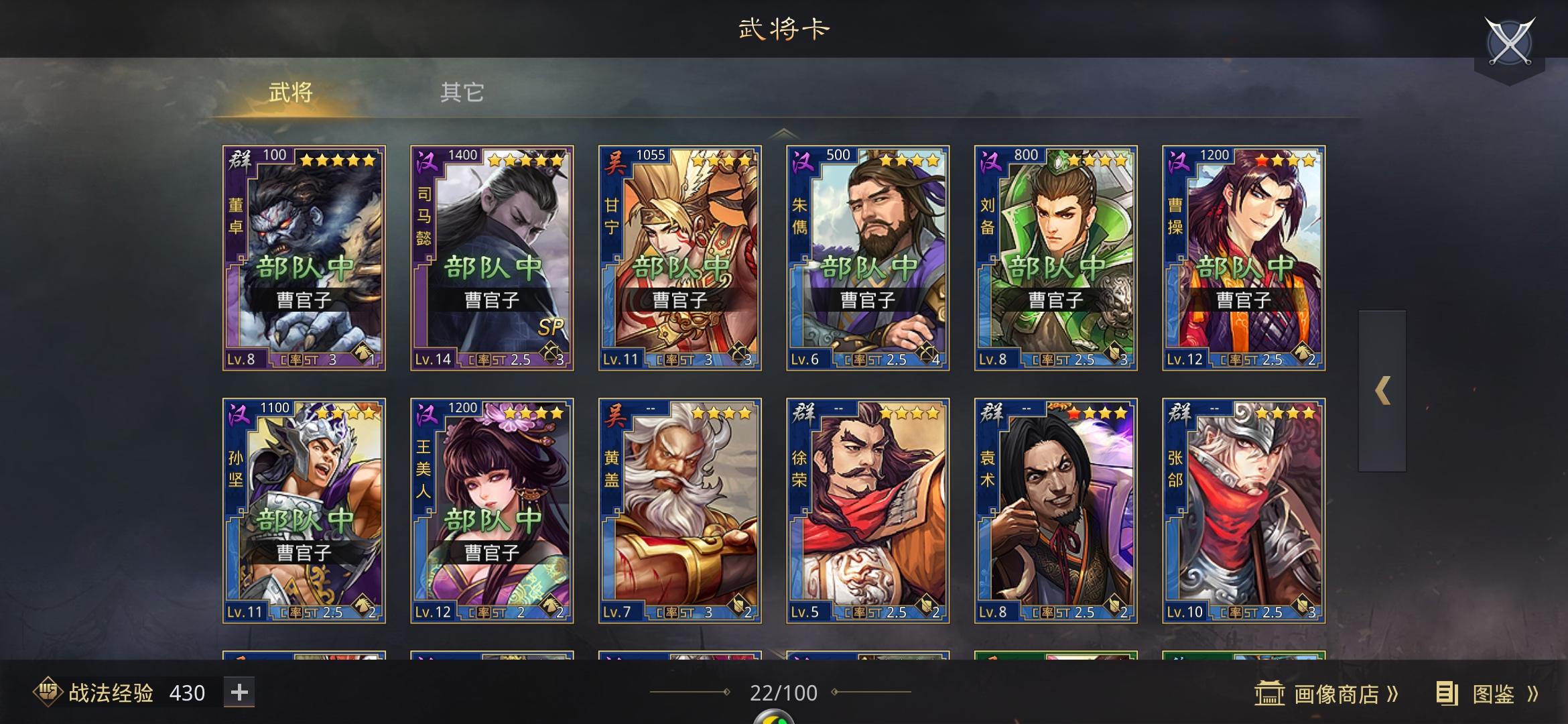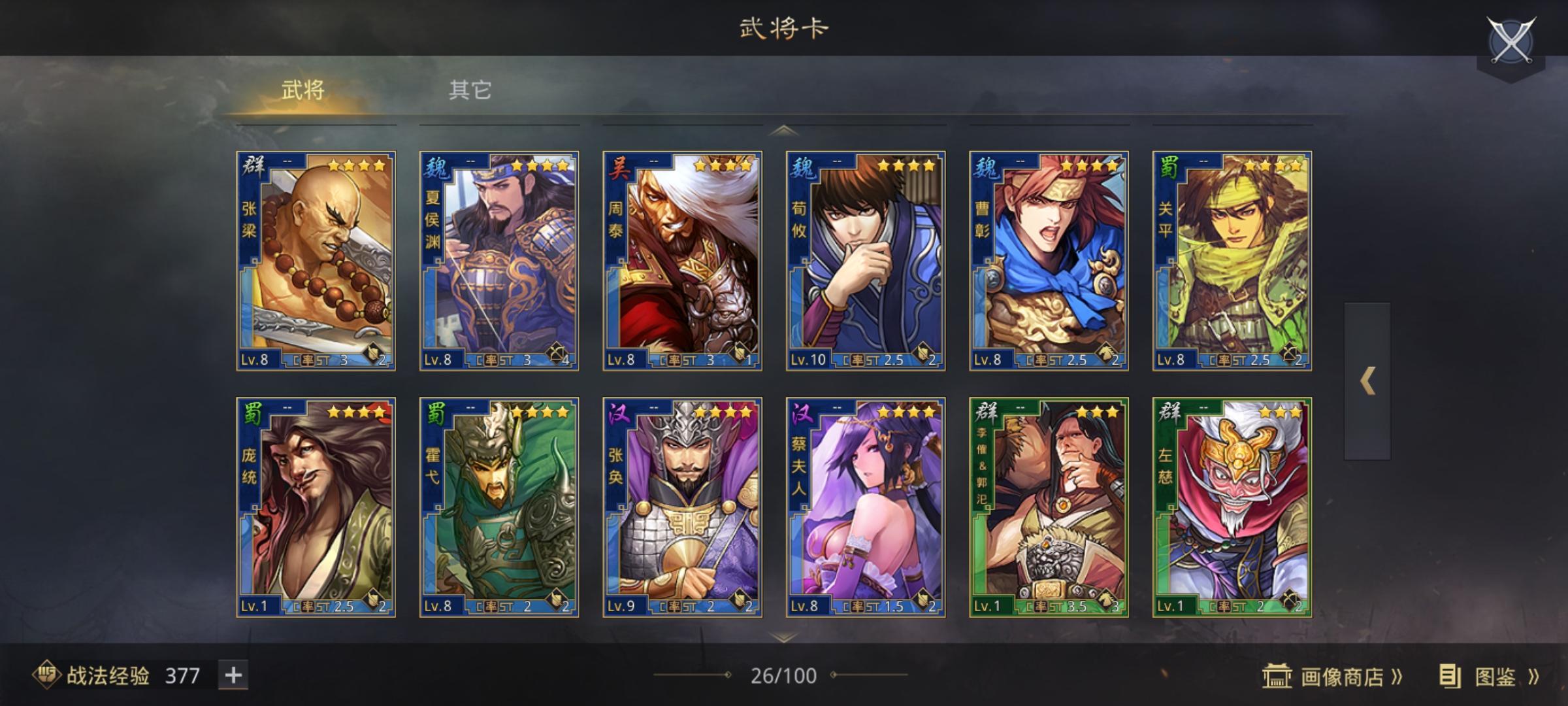 玩有四十来天,之前也弃坑过十来天,抽卡记录:两个袁绍、两个邓艾、两个张角、许褚、张春华、何太后、卢植、董卓,简直秀的飞起啊,一个能用的都没有!要不是陈情给张辽早就不玩了。这号一赛季也快结束混个割据后面能玩吗?号很黑抽卡都是三十抽以上才给将,而且平常都是一个四星带四张三星,四星都是稀有