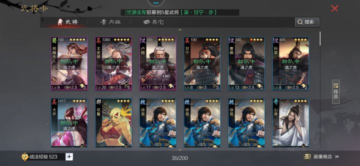 麻烦大佬们看看怎么组队,开荒怎么组,打架刷武勋怎么组,拆迁怎么组,骑兵怎么组,还有个问题,我不会玩发展的慢5000势力,但现在天下都打董了,进资源州了,我开6还要么平要么失败各种翻车,怎么办呀,还有个问题签到领的武将和抽到的武将只有技能不一样?属性是一样的吗?以卢植做例子,哪个大佬能说一下