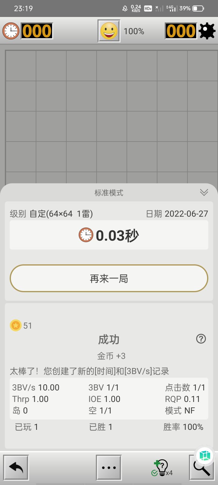 直接自定义把格子拉满64*64,雷放一颗点一下就过