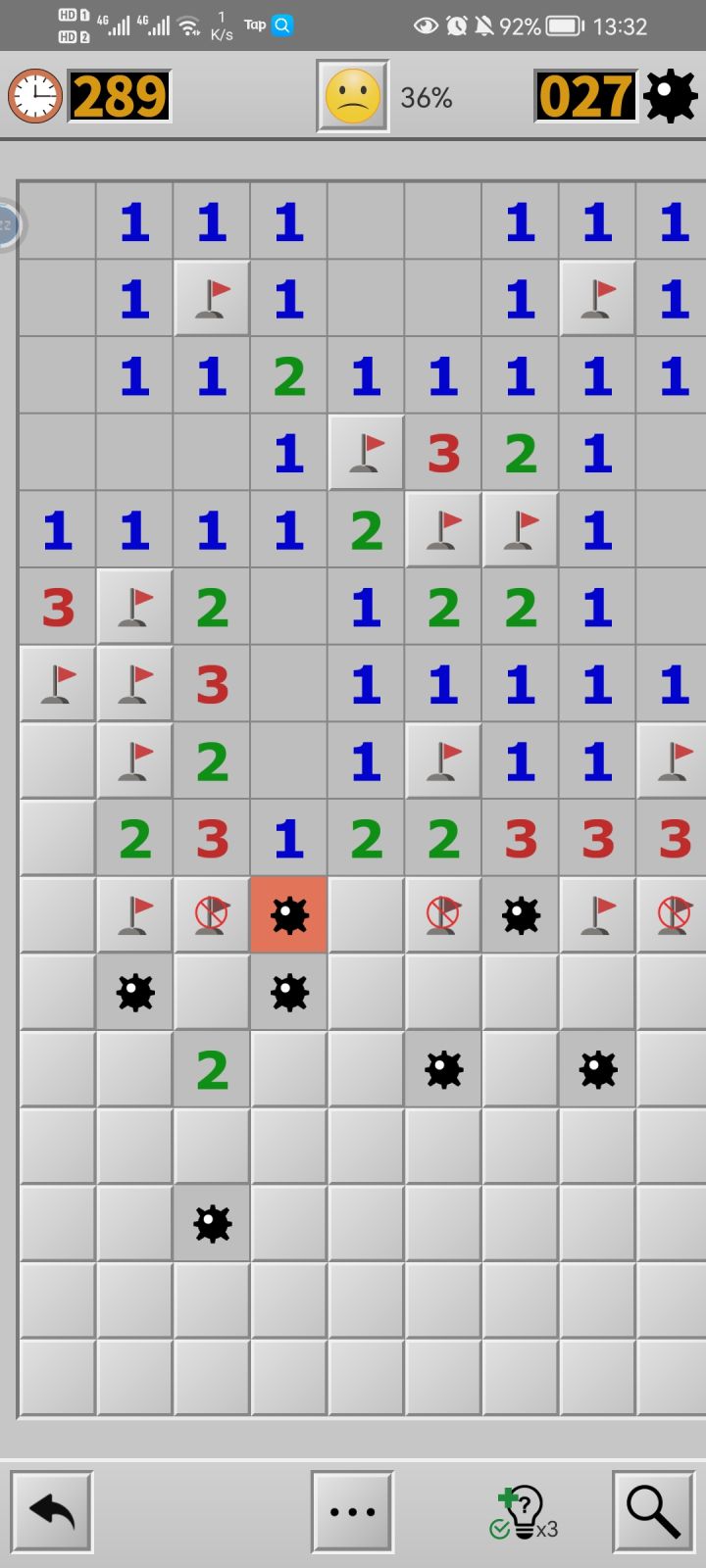 我怎么感觉碰到两次bug了,是我自己没有理解到游戏精髓吗?图一点到雷的下面的那个“2”图二右下角的“3”