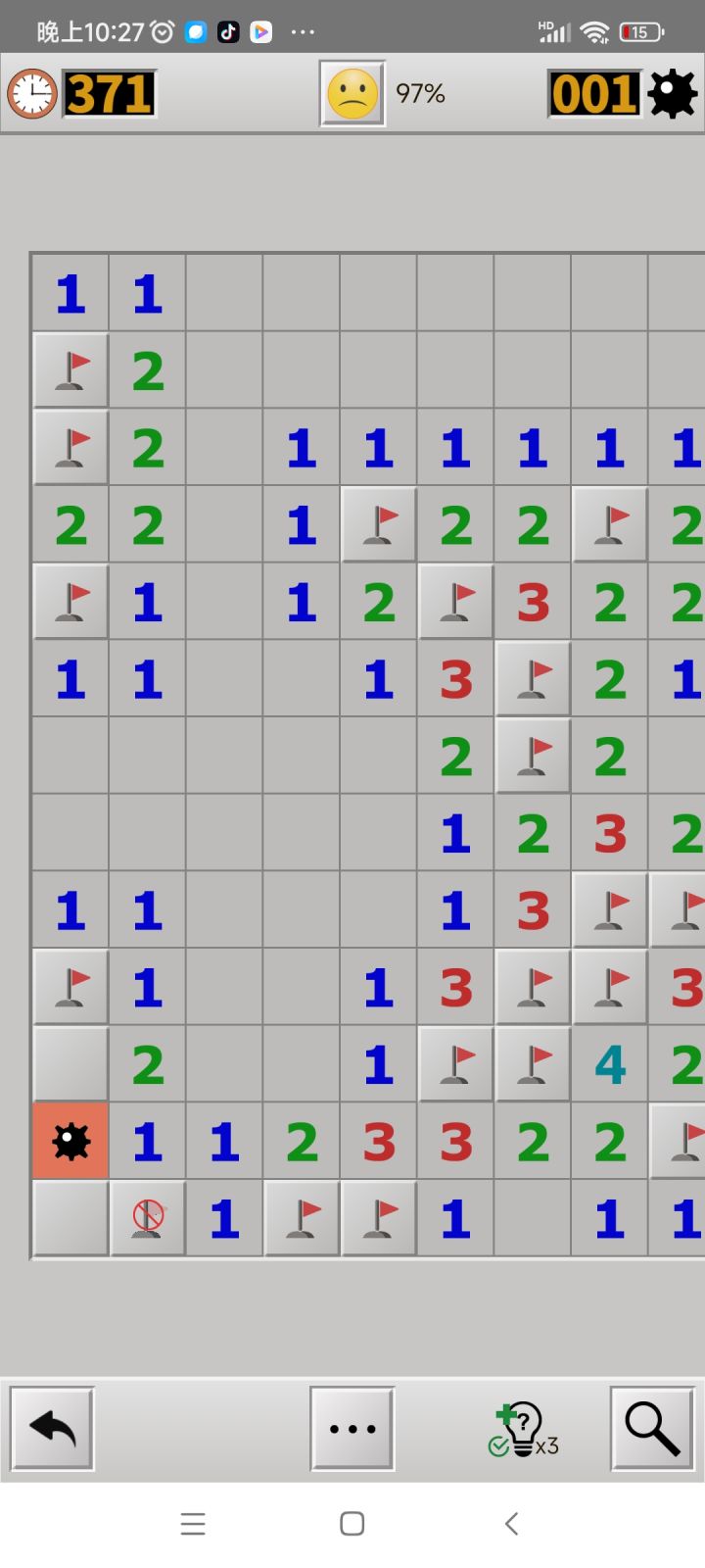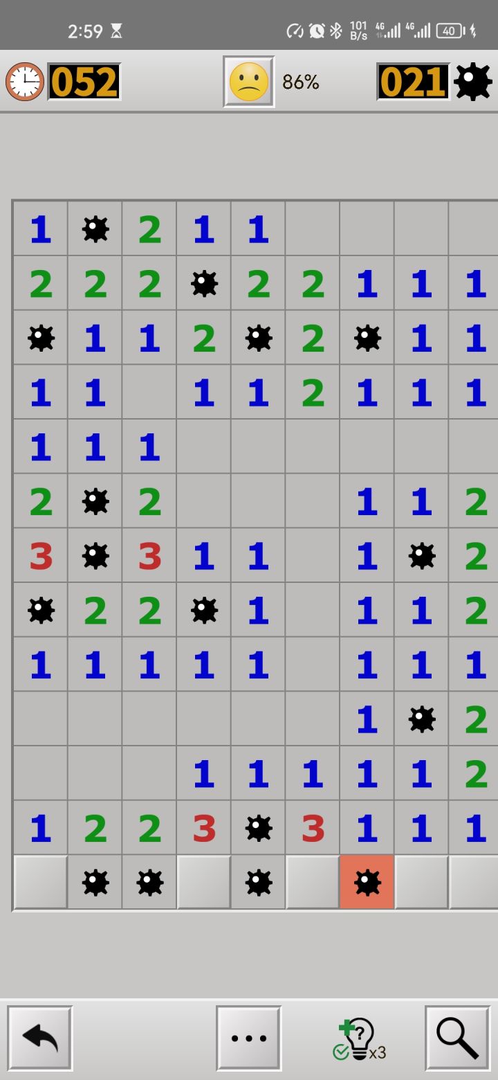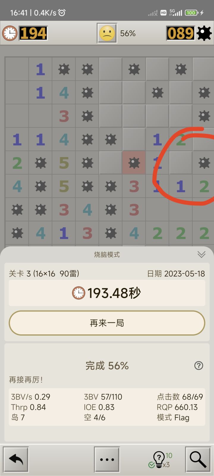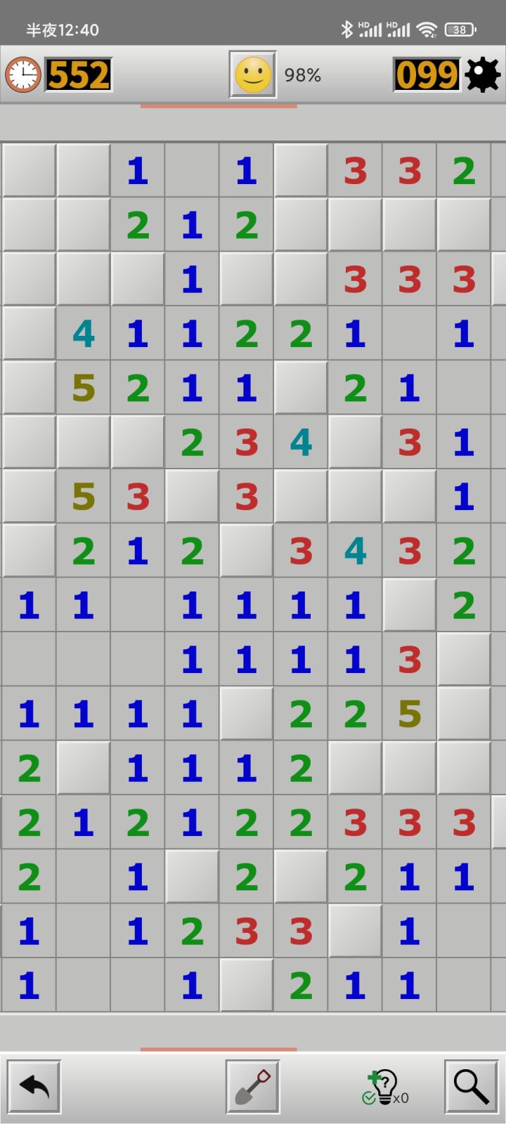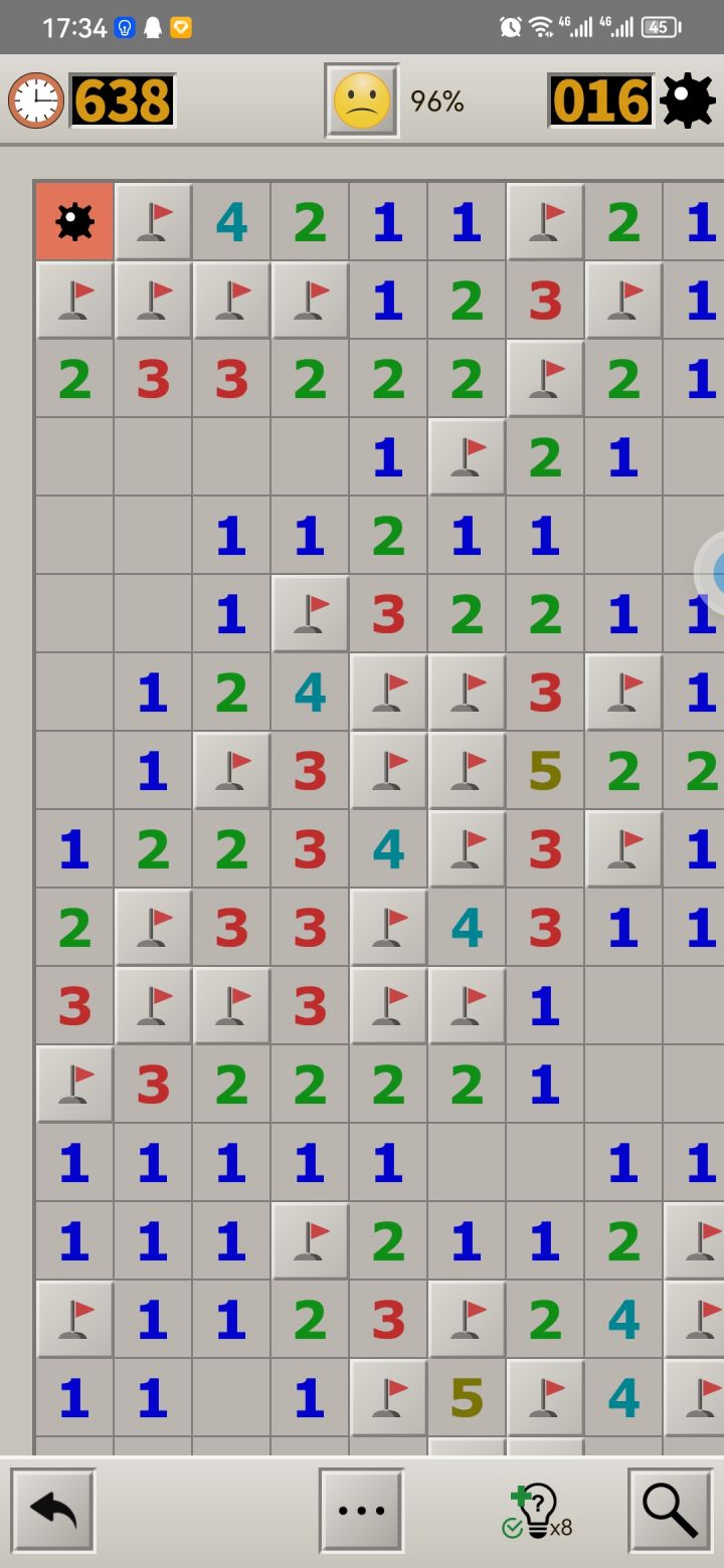 这游戏闯关模式玩到大师最后两关根本过不去,前面的还能靠运气蒙对那些不可推的,这种情况我怎么蒙?左上角一颗雷,周围都是数字,根本不可能过的好吧,还是在推了96%的程度下,搞这种,直接心态炸裂,4个小时每次都是这情况,游戏把这种不可过关的情况排除了再出吧,这bug都让人玩不了了