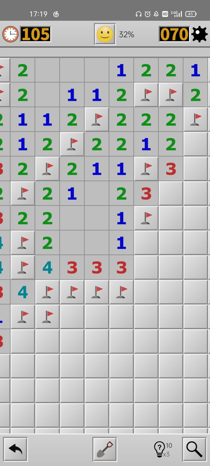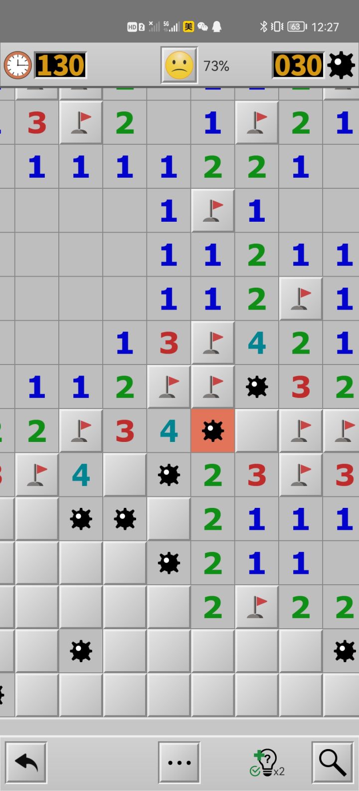 我真受不了了,真的,第不知道多少次因为没按上切换模式的钮手快碰了本来想插旗的雷身上,都能调整方块大小了为什么不能调整底下工具栏的按钮大小😓😓😓