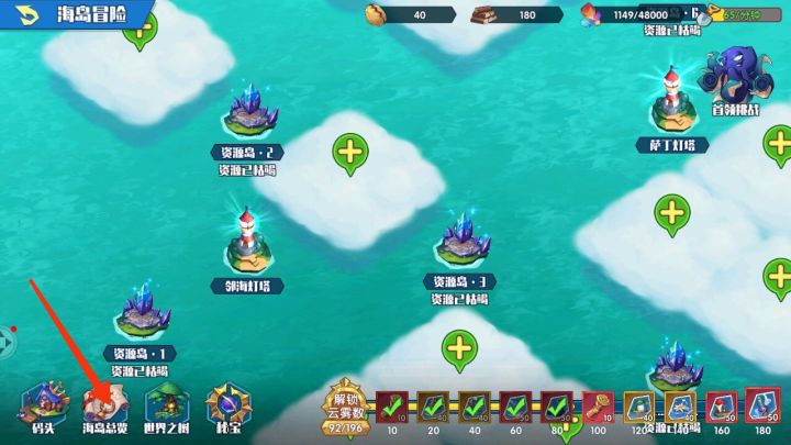 4、海岛冒险中,如何知道资源岛以及灯塔的具体位置?