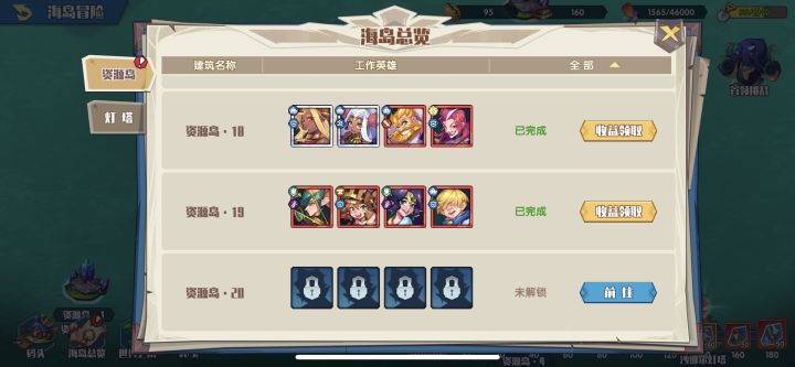 3、海岛冒险中,灯塔资源可以用于升级船坞(是关乎船坞的升级所需的材料的最主要的来源)同时灯塔的开采的条件越到后面越会于码头等级挂钩。