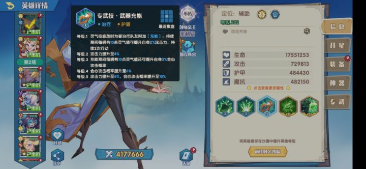 按技能描述,5级武器充能应该每10灵力加6%攻击10%会心,100灵力应该加60%攻击100%会心,而实际效果半点攻击和会心都不加,反而攻击和会心还降低了,不知道为什么。而且人物战斗状态栏里也没有充能这个图标如下图所示不带索利安,温蒂普攻是811398带上索利安,放过5级专武技能后,温蒂普攻是532886,不但不增加攻击,反而攻击降低了。根据再次测试,3级武器充能加攻击和加暴击的效果是正确