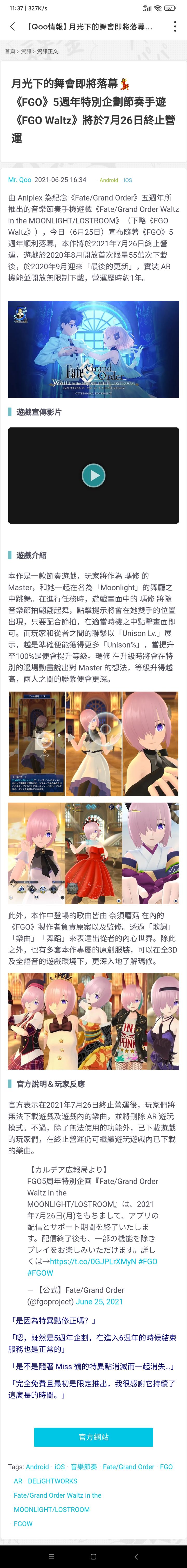 音乐游戏《FGO Waltz》第二章将在 8月25日 限时一天开放下载。