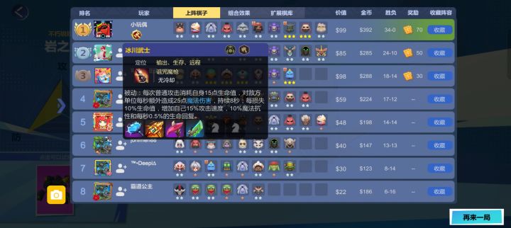 刚回归,试试水。九战士是最简单无脑的,很难针对的阵容。可以闭眼上国王。九战士yyds!