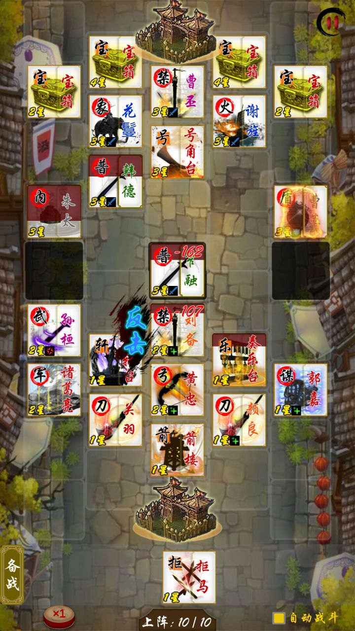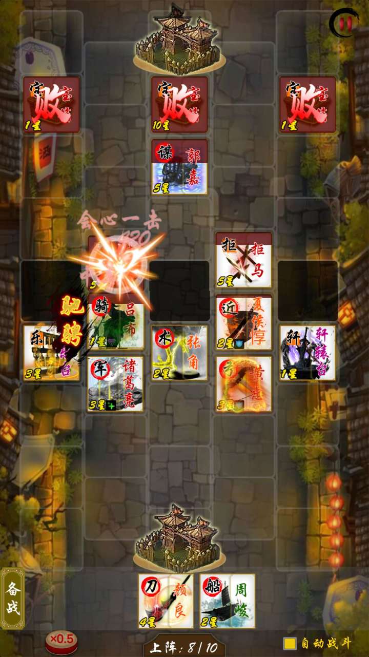 ——刺客(乐进、史阿、王越、韩龙等)——技能:【刺杀】深入敌方,选择远程单位中攻击最高的目标进行攻击。造成伤害,并为其添加【流血】效果。攻略:十步杀一人,千里不留行;事了拂衣去,深藏身与名。三国中的刺客不在少数,只不过留下姓名的寥寥无几。新版本的刺客加强了其战术作用,可以越过前排的肉盾、陷阱等,直扑敌阵中远程单位中攻击最高的目标,并且附带【流血】效果,在本回合内受到攻击时会有额外伤害。可以说刺