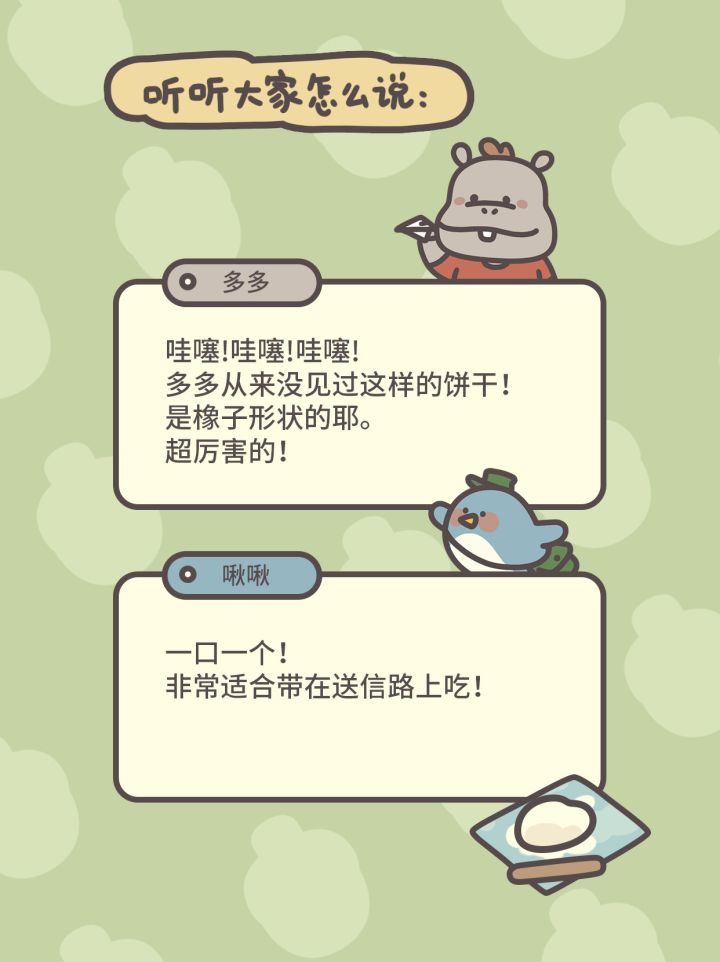 大家中午好!大家午饭吃的什么呀?今天给大家介绍下橡子屋的第二招牌——橡子饼干🍪 橡子形状的橡子饼干!超级可爱吧?对应现实的话应该是那种很简单的黄油饼干吧~ 有没有松宝能做出来呢?#橡子屋 #游戏安利 #游戏推荐 #游戏福利 #游戏讨论 #游戏资讯