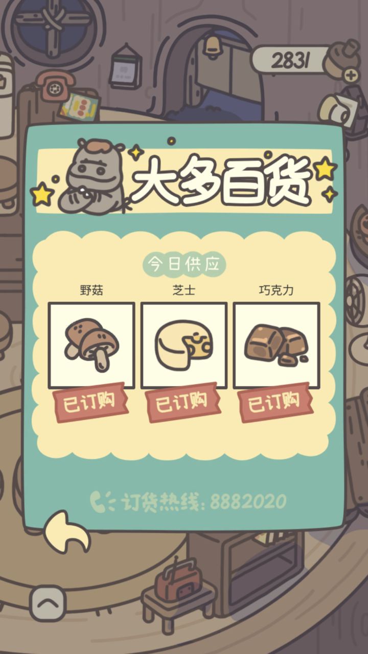 哎!这么快就玩完了嘛(大概21天?),星座也全部收集了~不过今天刚更新了一波,制作组加油加油猫咪举手之前羡慕别人橡子攒了好多啊,没想到三四天不消费已经有2000多橡子了hh (充了小卡)话说那只小班真是来店里喝南瓜汁也要推销工作啊!哈哈哈哈萨卡班味甲鱼。虽然说没有什么食材商品可买了,但是关于人物的记录还缺少很多啊,食谱刷新的比较慢,扭蛋机也有一些没扭到。哈哈哈比较闲有空来