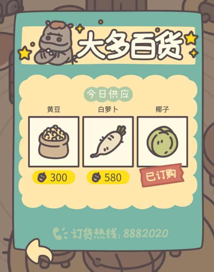 现在积攒了很多食材,但没有对应的食谱可以用,橡子都用来买食材了,还是应该转去买小浣熊的道具#