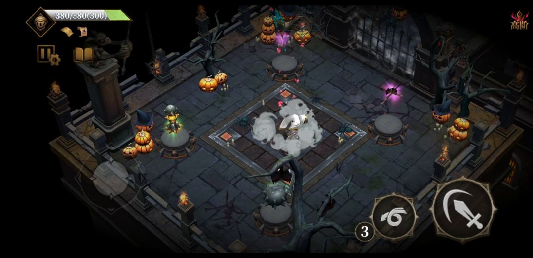 这游戏前期需要肝一阵子,可以用这套刷图+下副本都很快,火双刀+灵能塔+尖刺套(地图+赤红宝珠)+伯爵时装,下南瓜高阶大概25秒-40秒,困难暗魔全程直刷boss大约8分钟。😁