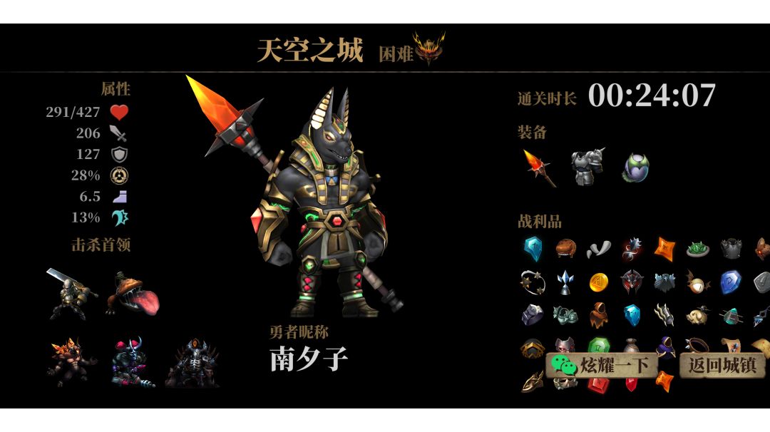 用冰杖猥琐的熬过了“痛苦”前期😂,中后期希望能爷们儿一点,给大家推荐一套能正面刚的套装想法,尽情享受挥砍带来的解压快感。 武器-武士长刀(对失血目标增伤20%);副武器-连射箭塔(单boss挑战推荐用),散射箭塔或者暗影瓶(刷图推荐用);护甲-死神护甲(对失血目标伤害增加20%),宝石镶嵌-赤红附魔(对敌怪赋加失血效果)、充能披风(挨打增加副武器充能);皮肤-白袍午夜伯爵(攻击失血目标回复3,暴击再加1)。 套装思路:长刀能格挡敌怪的各种攻击,刀光剑影(格挡成功有黄色剑气)就是帅,正面刚总免不了要受伤,受伤刚好触发充能披风给副武器充能,多扔几个副武器在地上如同吸血泵,非常的安逸!!!😍 (另外武器选“拳刃”的话,对操作要求大,容易暴毙,所以不建议)