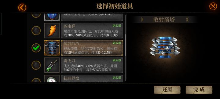 为什么初始装备选了散射箭塔刷图时没有