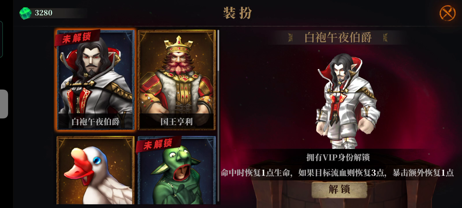 为啥我的白袍吸血鬼领了没有解锁呢