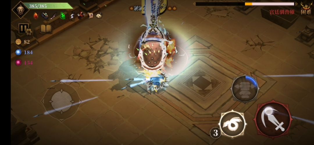 我试过,双刀加个伤害药剂,加上读秒3秒一层十秒过关。到后期伤害也高了,用不了七秒。三次翻滚攻击三个方向怪都清完了。