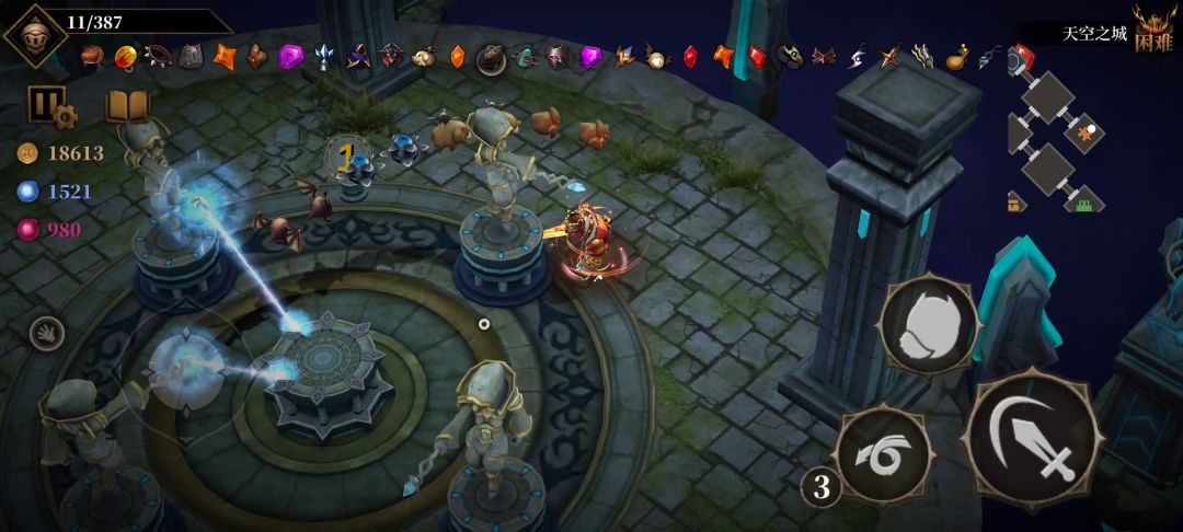 关键在于 大嘴魔像这个宝石,进图之后吃回复道具和金币,道具随缘,攻击力上来了就乱杀 不管什么武器或者觉醒与否,攻击力才是王道😁