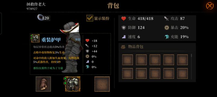 吸血鬼时装 双刀+散射箭塔 尖刺护甲(地图+雷电护符) 双刀和箭塔容易打出吸血,手残党放心莽,同时也都能触发雷电护符和尖刺护甲,方便推图,另外加一个地图,开局直奔领主不走弯路 打领主之前攒一个箭塔,或者受点伤进去吃肉补充能,进入房间后控制好距离一个翻滚滚到Boss脚下,这时候两个模型是重叠的,动一下就走出去了,箭塔一放一个不漏全吃下去,配合雷电护符和尖刺护甲瞬间秒杀也没问题,一个不行就两个,Boss除了无敌无处可躲