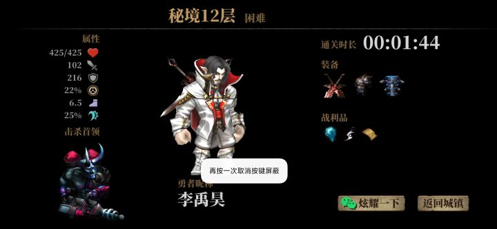武器,看个人喜好 衣服,回血甲 宝石,炼金斗篷+大嘴雕像 服装,金甲将军 副武器,附魔药水 这次主要是想印证一下,大嘴雕像吃食物对于战争金币和满级武器加成的区别,这局没有拿到战争金币就先发个武器的。 我用的是双刀,武器满级就是540(40是基础数值)大锤的武器成长更高。可以看到,在到100层时候基本上面板伤害都在5000+,大嘴雕像的介绍里面300%是极限,可事实是远远超过了这个数值,满级武器也就是25000金币需求,这个要求在金甲将军配合炼金斗篷的情况下,在50层以前就可以达到,后面食物房给的都是烤全鸡,单次最低加成都在400—600,并且可以速刷了。 效果的话,视频里面就能看到,附魔药水一磕,老板也站不住3秒。哪次刷到战争金币了再发个视频对比看下。