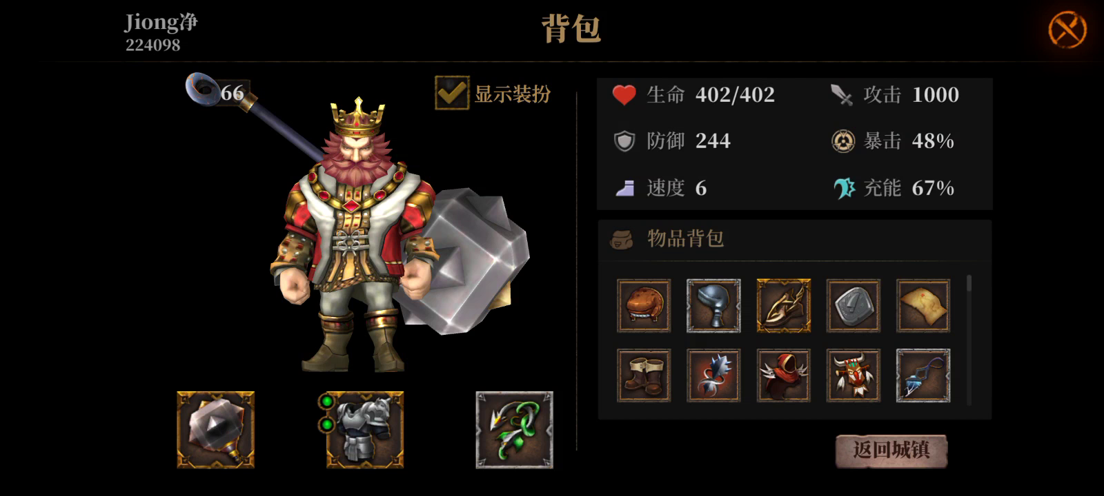 最强套路之一,国王➕独角➕大嘴幼兽➕大嘴雕像➕剑之纹章。国王被动出来后,把除了金人的怪全打死,用剑之纹章打死小金人,金币给大嘴吃,一把把所有战利品全部集齐不是梦,得了武器就卖,然后全买食物加攻击力yyds