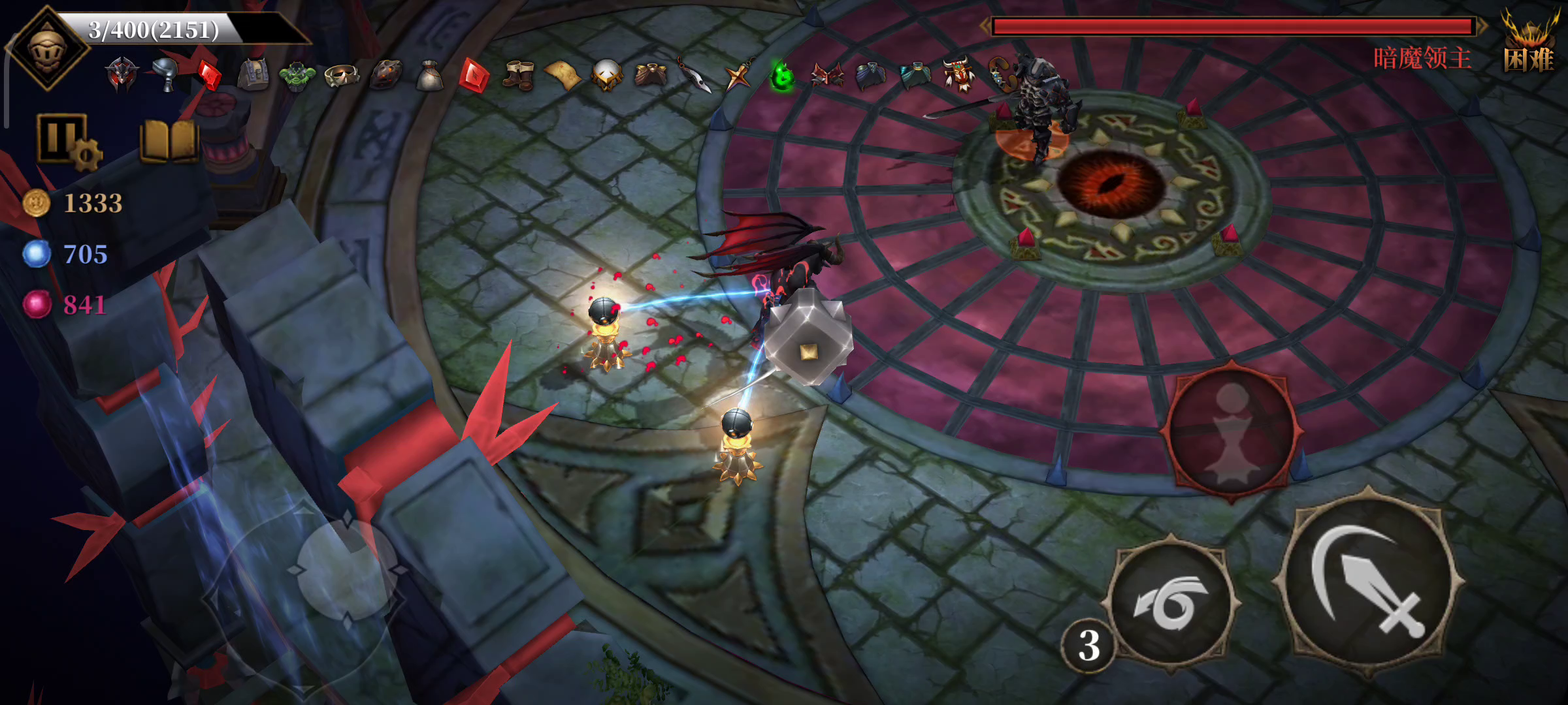 这是暗魔困难里面最后一关,这里面没有出百分之三十伤害翻倍的,第三锤4000多暴击,如果出了估计两锤结束,这里我打了三锤,预计boss15000血量