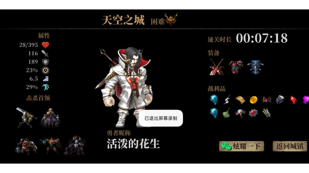 运气比较好,30多层武器满级后很快就刷到了大嘴,吃食物后增加攻击400+,2大嘴后单次1000,游戏结束时攻击1.7w