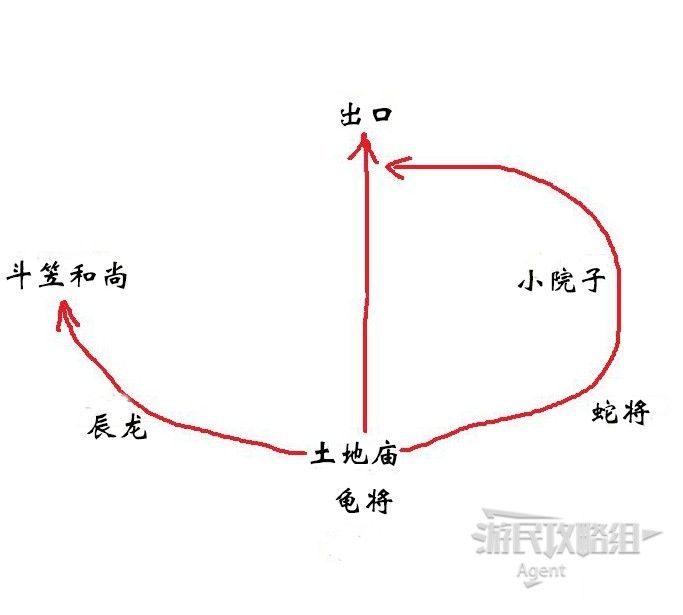 雪山径:披霜道土地庙→第一次打赤尻马猴→小西天土地→照鉴湖土地庙→湖岸边树下【打坐蒲团】→湖面上打亢金龙→被抓到浮屠界浮屠界:对话隔壁牢房的小张太子→下层土地庙→三楼上层土地庙→旁边洞跳下去,打魔将·莲眼,牢房门全打开→回牢房对话小张太子,旁边鼠妖尸体就是三王子,拔出他胸前的刀→轮藏土地庙→打魔将·妙音→经筒外土地庙→穿过山洞,路边围栏后面【打坐蒲团】→冲寒道土地庙→右边通往浮屠塔→左边通往安身