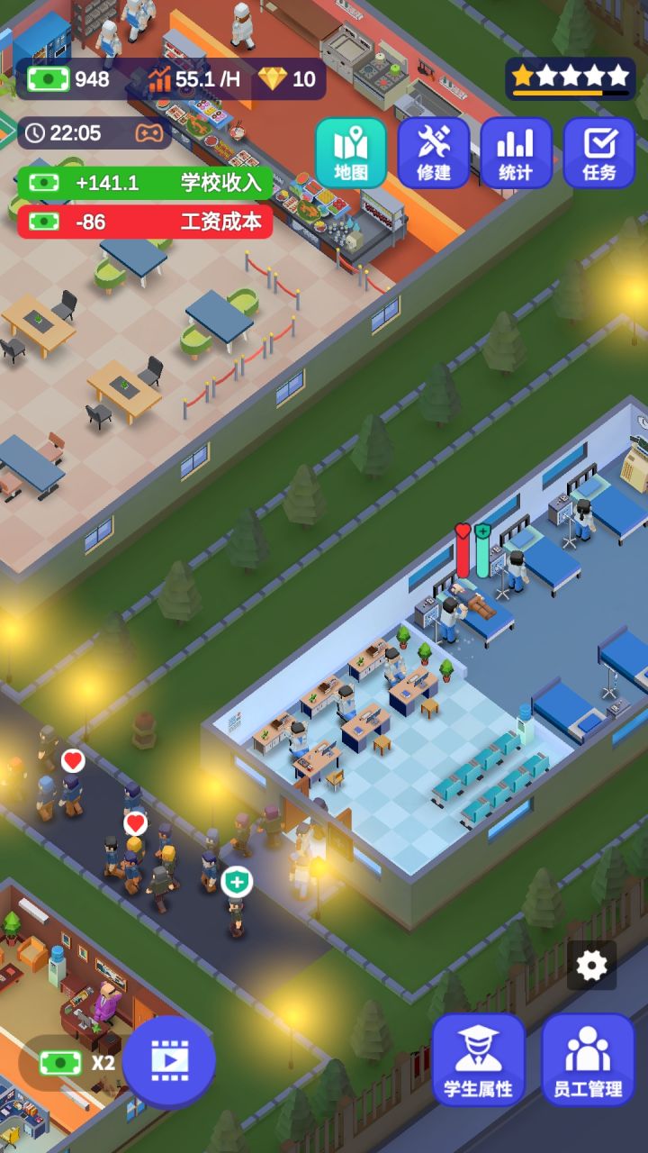 贼恐怖一个事情,我刚一打开游戏,那些小人全部跑去医务室那边,然后吓到我了,然后在门口又突然跑回宿舍
