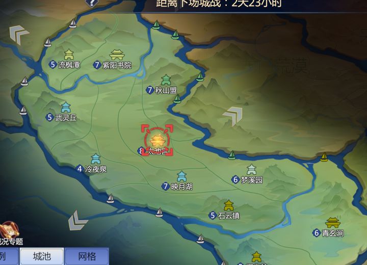 第五赛区6月24日城战记录如下:城战地点:临安城、秋山盟、太池宫交战双方:致青春联盟与伊人笑联盟展开激烈城战城战结果:临安城:致青春同盟守城成功,一举拿下临安城池。秋山盟:致青春同盟攻城成功,一举拿下秋山盟城池。太池宫:伊人笑同盟守城成功,守下太池宫城池。当前城池的占领情况如下:致青春联盟占领主要据点为临安城池,虎丘剑池,龙泉村;骚男天空联盟占领主要据点为明目谷,龙门城;伊人笑联盟