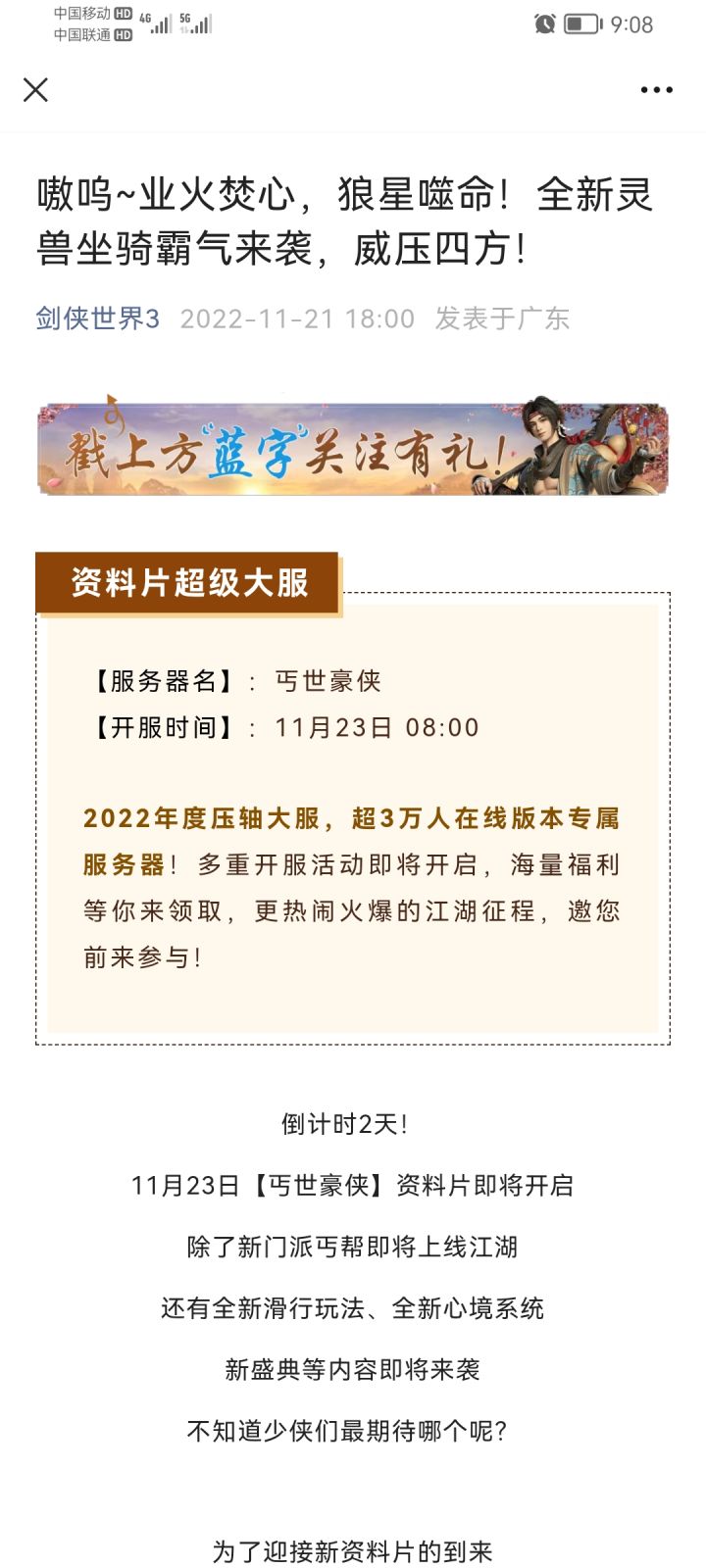 11月23日【丐世豪侠】资料片即将开启! 有没有组队一起去新区玩的😃