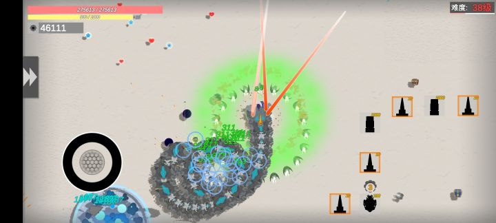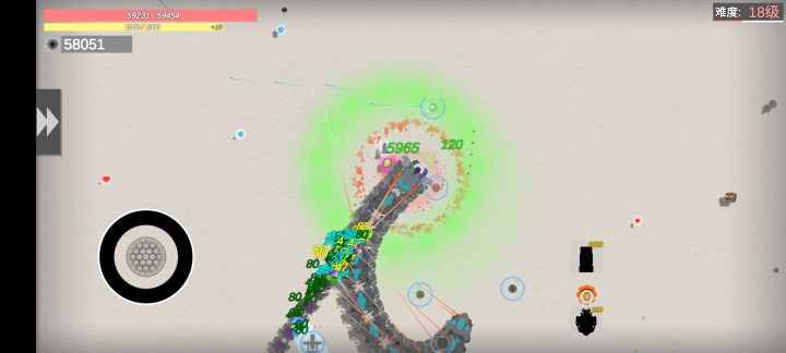 目前的情况是一堆维修无人机负责加血(到底加没加上看不清),燃烧的热能装甲负责输出,60关前秒坦克伤害将近十万血,60关之后不知道为啥坦克血量变少了,一千多就把他秒了,虫王一出现也是直接秒掉。武器只要几个激光(其他的回能量慢)不需要战斗的无人机