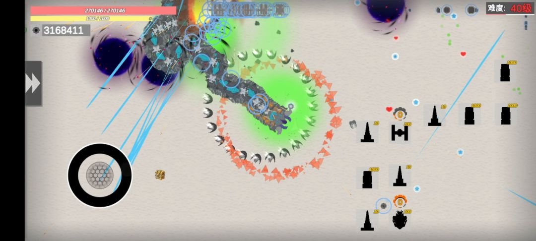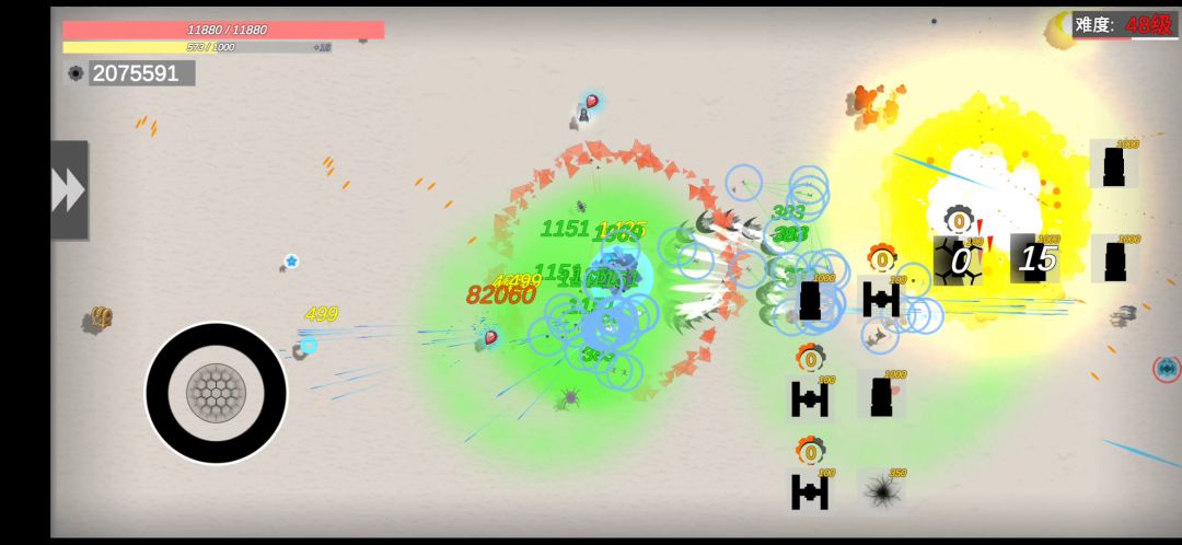 想送死,死不了怎么办?可以这样解决(维修无人机太多了)玩到后面(太卡了,没有意思了),太无敌,想不玩了看看分数多少,可是发现自己死不了 先把主武器换成小老弟级武器(这一步可有可无)然后把增益物品全删除,日炎不删(玻璃甲对回复也有增益)到这一步大部分的应该都会死了但是也有意外情况,日炎的消耗速度小于无人机的回复,,,这样都死不了……所以无人机一定不要点太多前期10个或者5个就够了。不然后面想死都难(我手机没电了,就玩到49级,请问母舰多少波出啊)