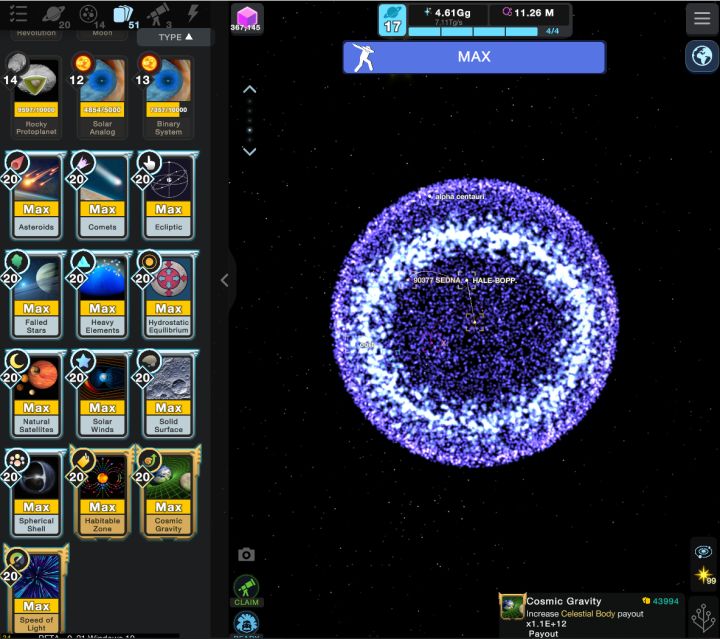 (附隐藏肝帝攻略)先来三张图镇一下楼😏首先是超越板块,17轮目前是最大级别,卡牌也是和恐龙板块一样最高20级,有恐龙板块的意味,目前还不好说。第二张恐龙板块,除了要完成50轮陨石,还要完成10轮温暖气候,加起来一共要完成500轮才到最高级别,我花了一个多星期才肝完,就问你怕不怕😫第三张主宇宙,主要是看元比特,自从8.52版本更新后,元比特最大数量调整为一兆,超过一兆后元比特就会从0开始收集