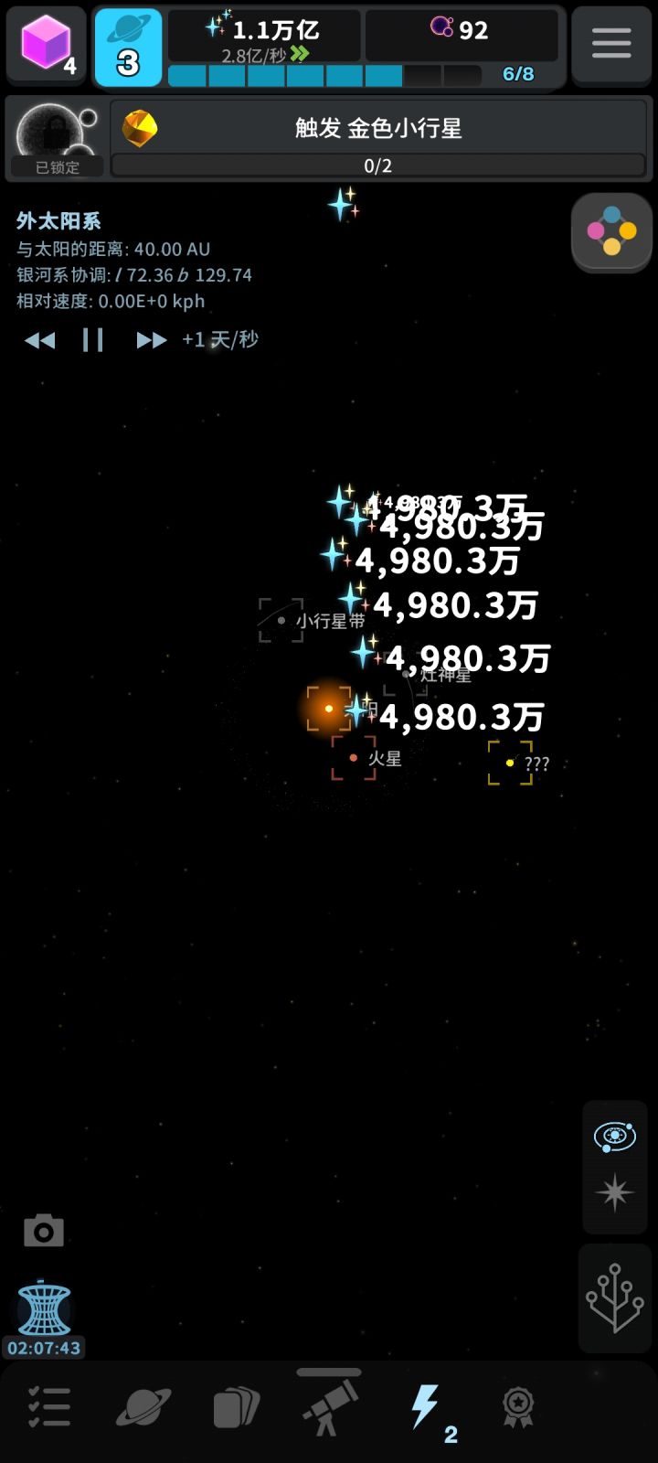 这个触发金色小行星无法完成啊,无论是点击,还是看广告,还是用达尔文元素激活,都不会增加次数