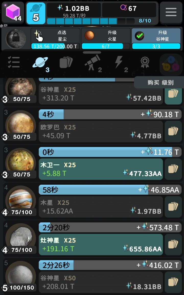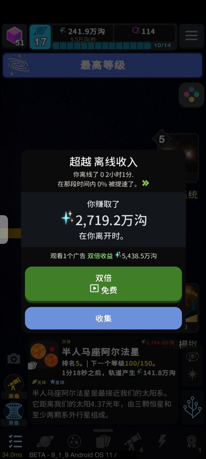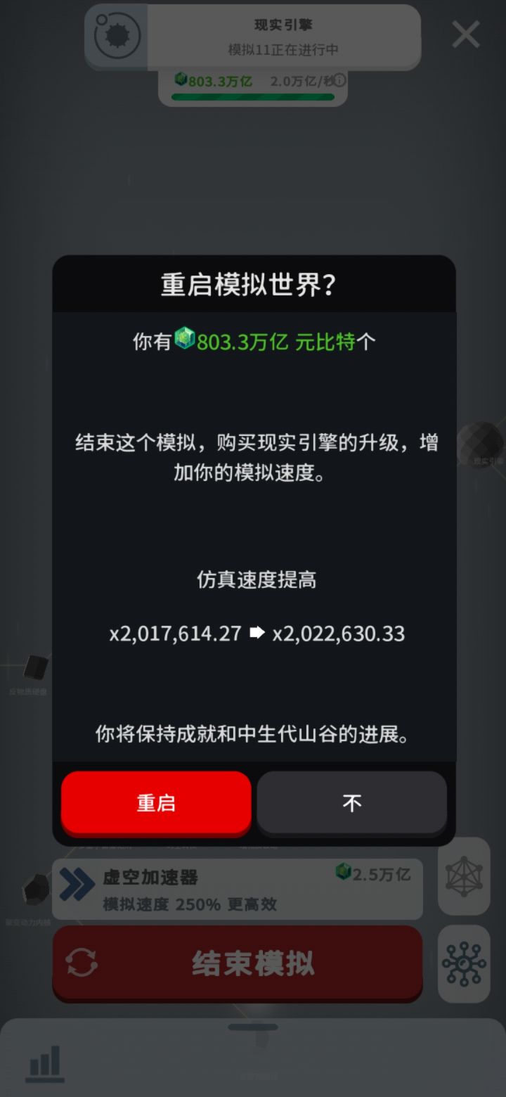 母星——地球——原始汤,自此你的进化之路拉开帷幕。从生物的基本组成单位——细胞的产生,再到四足动物——最初的殖民者,再到人类进化之初——猿的出现。看似简单的三个阶段,在游戏中却交织着不同的进化选项。这些进化能帮助生命每秒产生更多的熵来发展进化,而熵在游戏中是生命产生的基本单位。在前期,你是会选择更多的进化选项来提升每秒熵的产出,还是会点击屏幕“人工产熵”呢?假象相信各位造物主都有自成一派的玩法,不