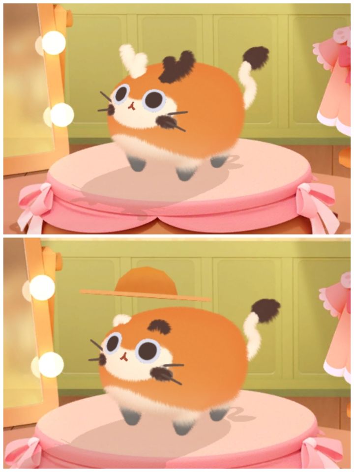 部分帽子穿戴后,鹿耳变成猫耳:比如横兵库髻(招招)、飞仙髻、细纹格子帽(罗伊)、绅士礼帽、大师贝雷帽、亚图姆头饰(八条)、红钻后冠(爱丽丝)、帐篷帽子(鬼鬼)、旅人帽(点点)、茑萝软帽、春意迟迟帽、归元兔耳朵等。