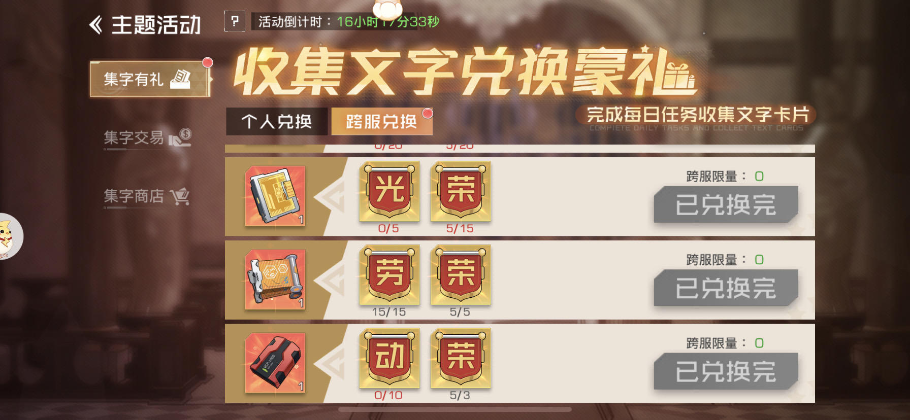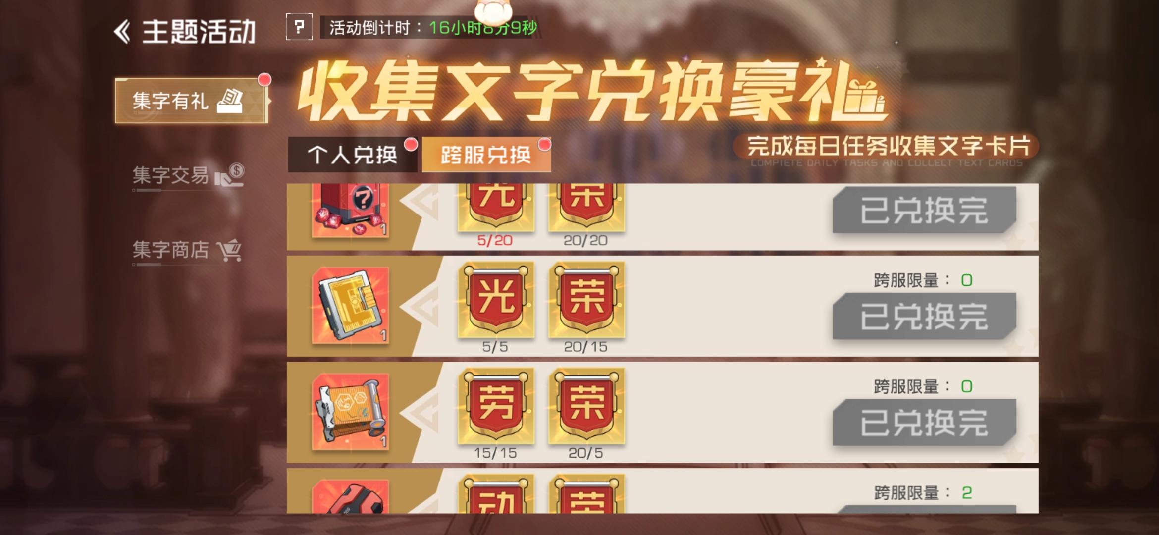 我大清早好不容易攒够字来换,结果被换完了,我现在这些东西,能换什么好的我这点来玩都换完了,那那些下午中午上线来的人呢,不是更加屁都没有