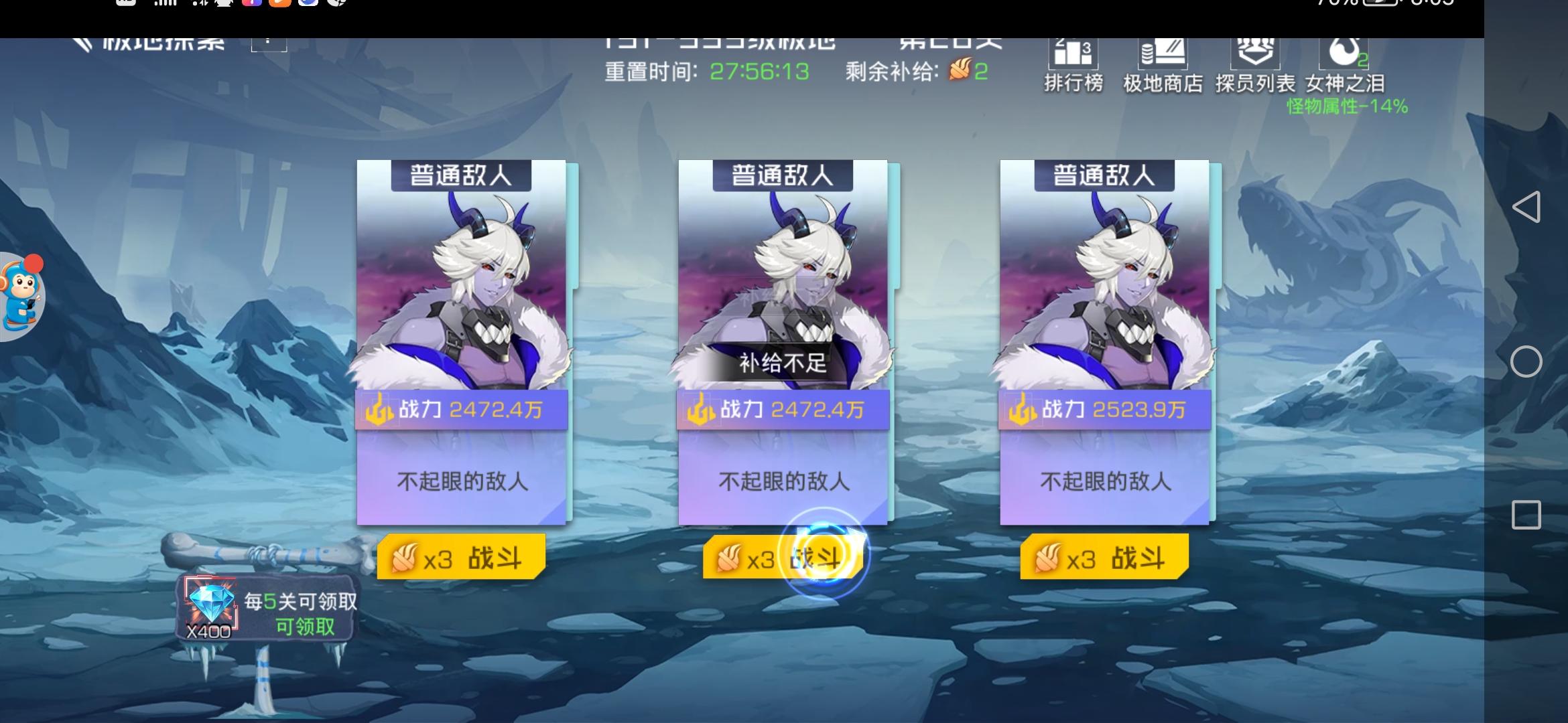 摆大烂❤️三张截图是不同的天数😂😂不想浪费王水了 打算等一次德古拉菠萝复刻再搞 想问下大家爬满500层的时候都是多少战力www 我主c洛可可 爬这个塔就是凉凉
