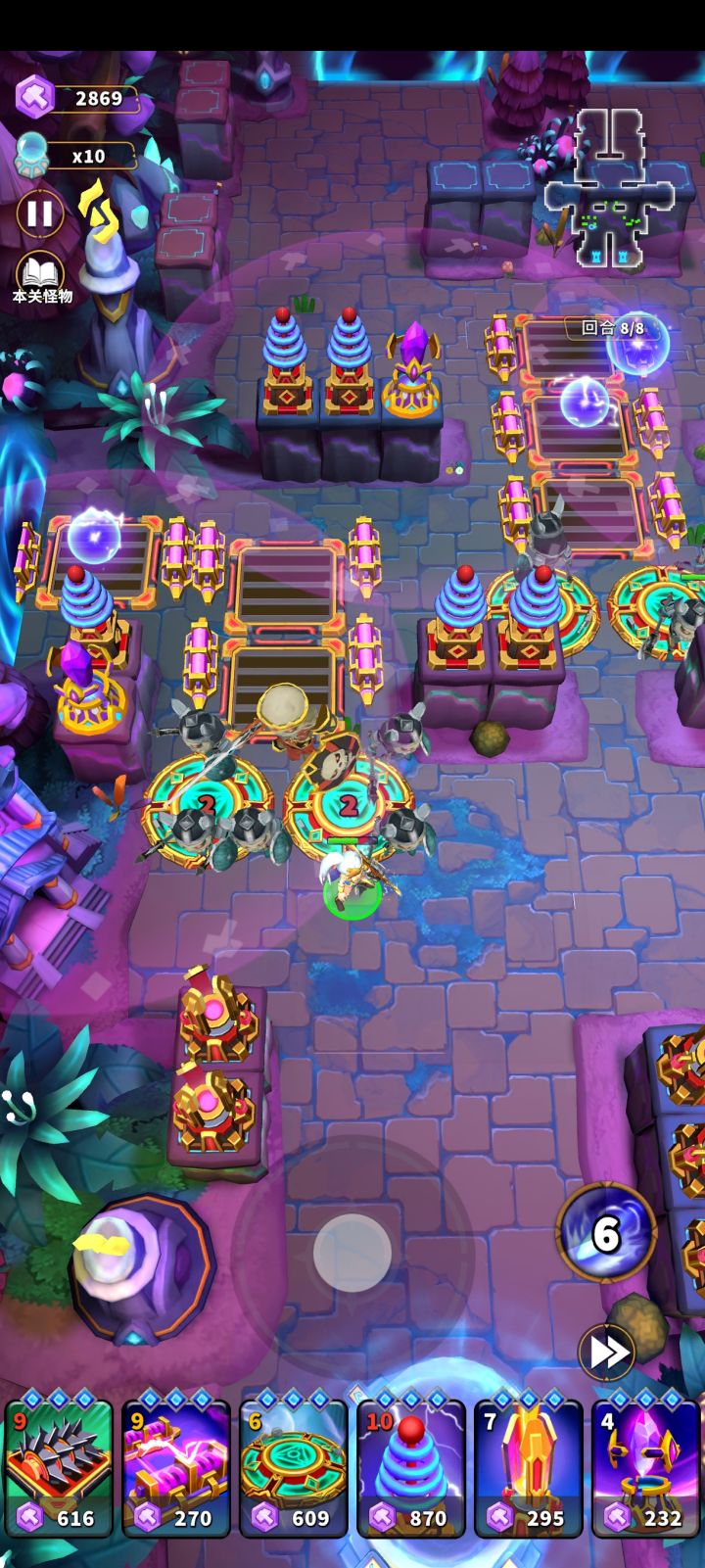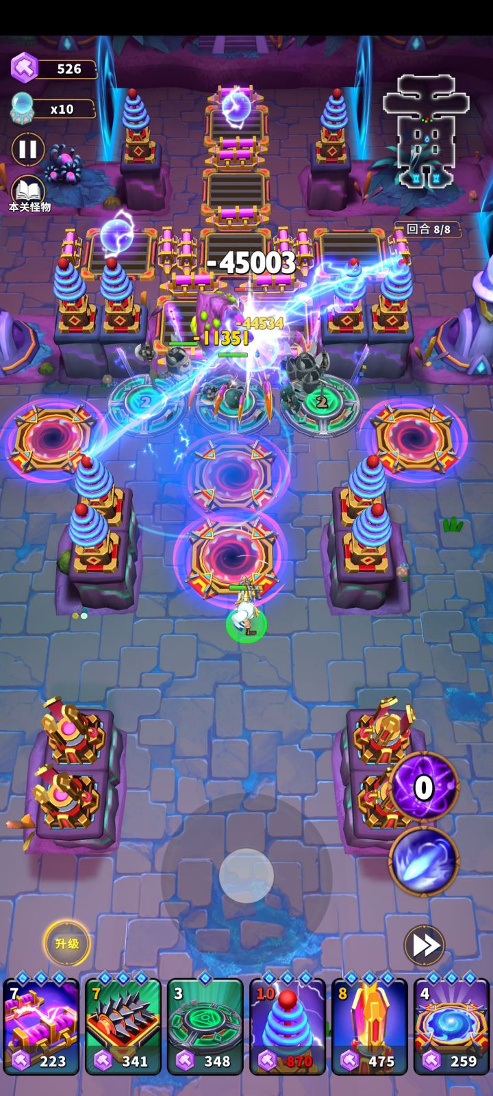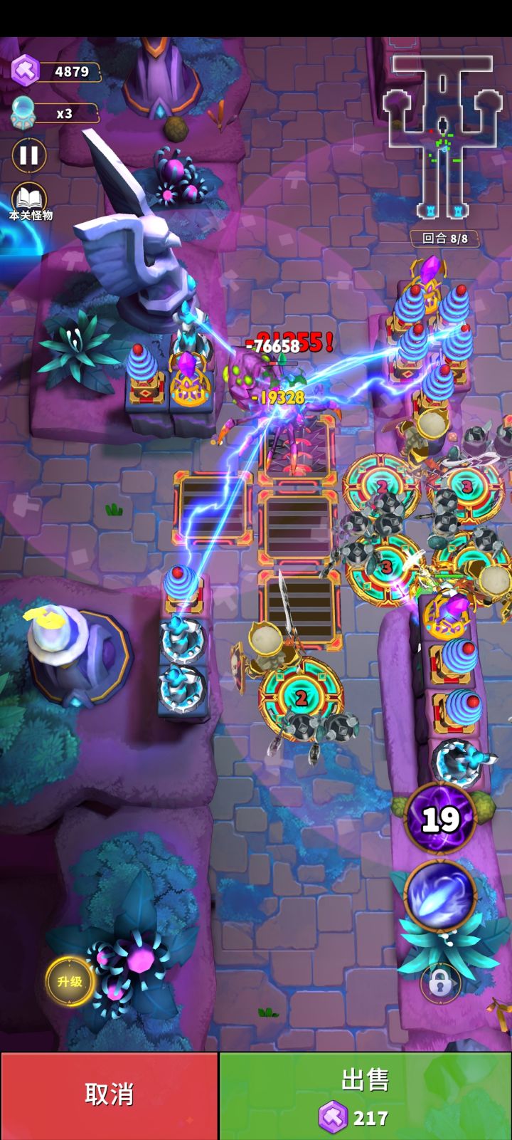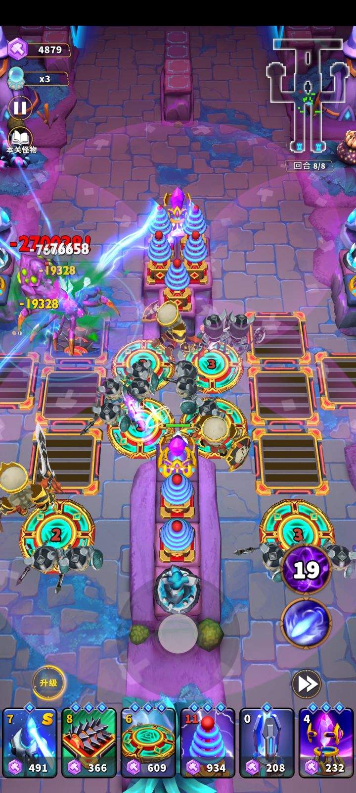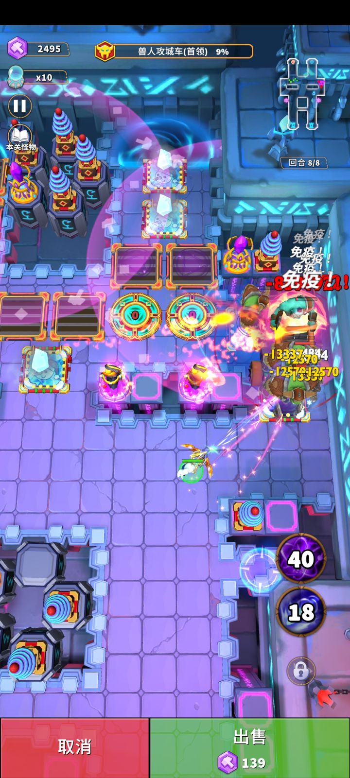 1000-3000勇气图中,最恶心的怪物莫过于冰巨人了,冰巨人的冰冻圈,会冰冻圈内范围的塔,导致防线被突破,但是这个圈子可以被麻痹克制,麻痹效果会让大圈子缩小到一点点🤏,那么雷塔和雷陷阱在此图中的表现是非常不错的。 注意视频中的摆放,冰巨人那条路的所有陷阱,都要被雷陷阱包裹。 虽然是主雷塔,但是雷塔对飞行怪物是无能为力的,所以第三回合要有弩的辅助。 #人征塔战攻略