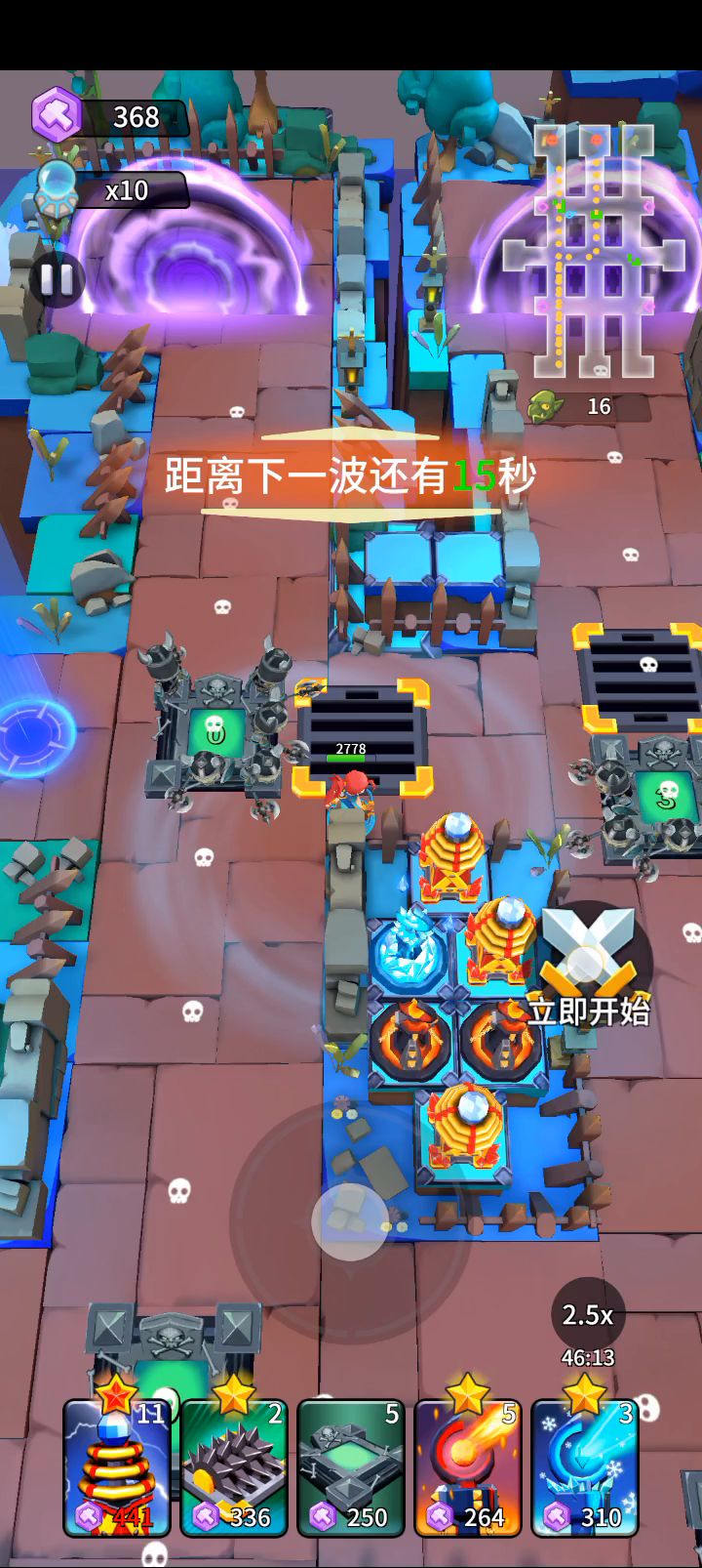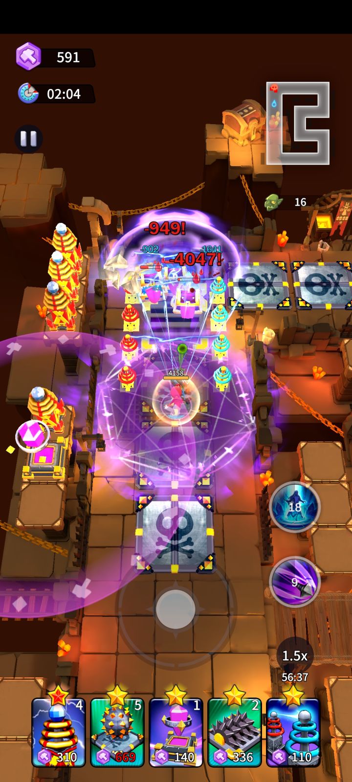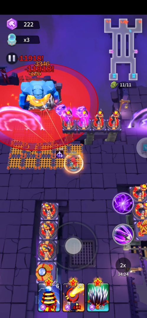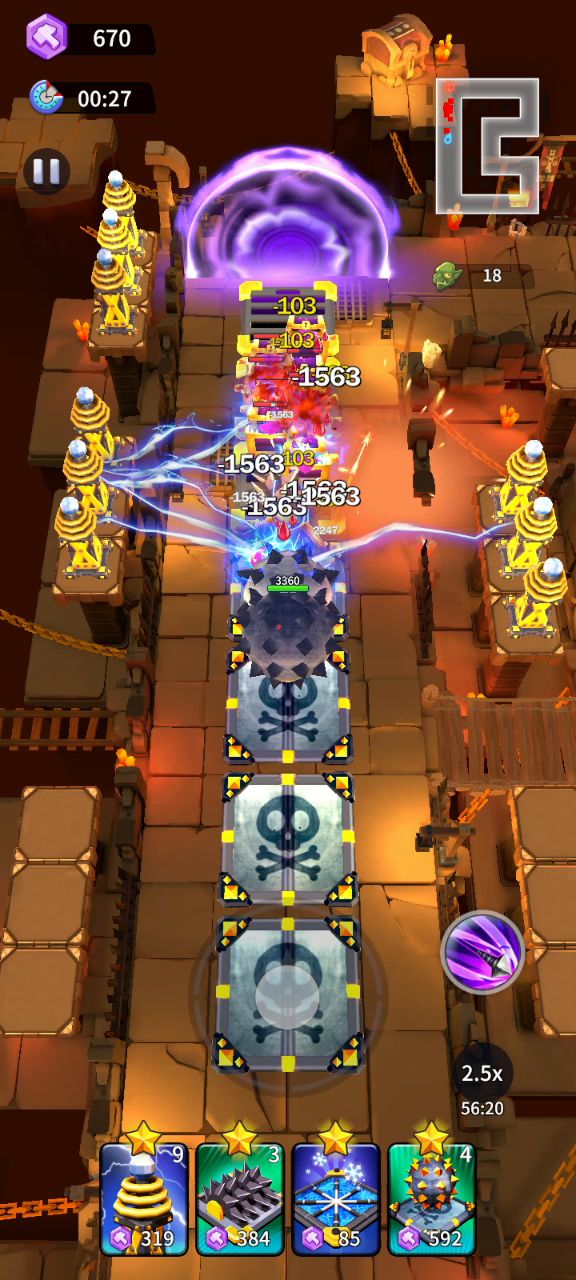 作为炮塔和火塔的升级版,开头连着放六个电塔,然后切割和滚石,最后照着摆就行。目前由于出怪时间大于关卡时间,190多碎片已经是极限了,待以后策划更新后会继续研究