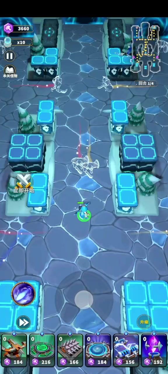 后期因为没有了小怪压力,优化了建筑的配置和位置, 推荐卡组等级70以上使用。此boss为火系,上阵火塔和弩即可,如弱雷boss这需要将切割换成雷能塔。 #人征塔战攻略