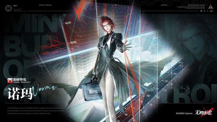 ■MBCC-S-256 诺玛■诡秘特化 Umbra Tendency「你的注视……会让我在整理实验数据时出现偏差。这种异常无法被有效解释,而且似乎只在你在场时才会出现。」*条目I:对象为治安局鉴证科的分析员,以冷静、严谨、近乎苛刻的专业标准闻名。对象被派往管理局进行协助,期间被卷入未知空间。*条目II:■■■■■■■■■■■■■■■■■■■■■■■■■■■■*条目III:异能名称【参数解