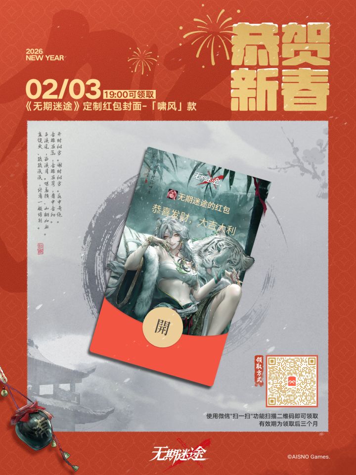 🧧新春红包封面第二波已送达「炉里的汤药温着,请替我看顾一会儿吧,在我回来前可别让它凉了。」—霁川「还是你这地儿好,凉快,小风一吹……就想躺下眯一觉……呼……」—啸风◼领取时间2月3日19:00◼领取方式使用微信“扫一扫”功能扫描二维码即可领取,有效期为领取后三个月。————————【客服反馈】【官方网站】【官方微博】【官方微信公众号】搜索“无期迷途”【官方QQ交流群】