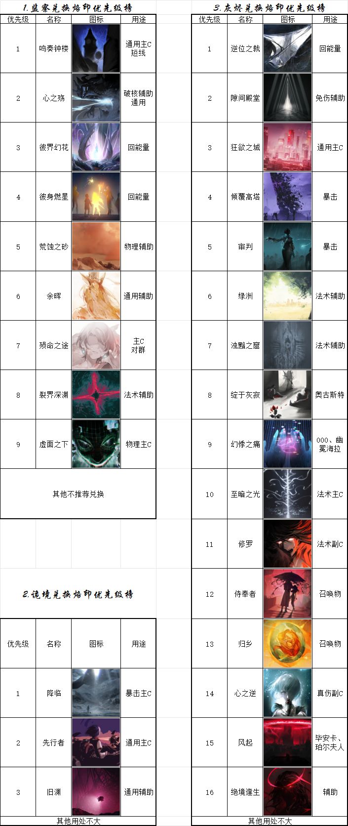 0a烙印兑换优先级榜