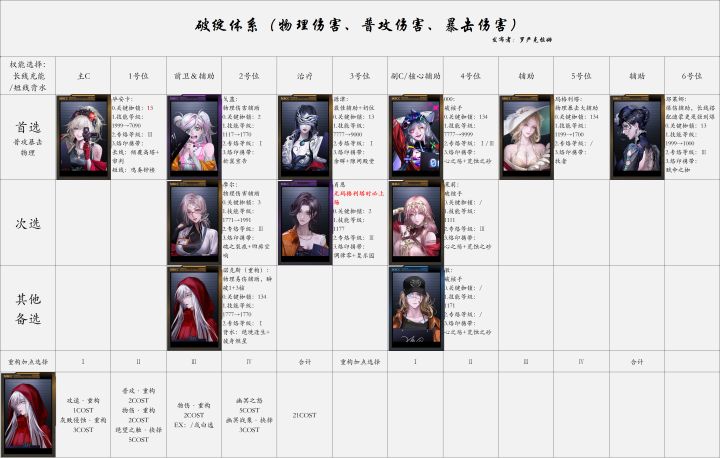 其他榜单攻略入口: 较上期调整说明: 增加了可以与玛格利塔+戈蓝的物理通用辅助组合,幽冕海拉作为副C兼背水辅助进队的可能,以及对于新手来说养成难度小的通用破核角色备选。 萌新入坑指南、梯度排行、抽卡规划、烙印搭配、配队建议(纯主观); 欢迎大家友好交流、指导评论,希望可以帮助到大家,谢谢~ #无期迷途创作征集 #无期迷途暗轨难明 #无期迷途攻略 #无期迷途