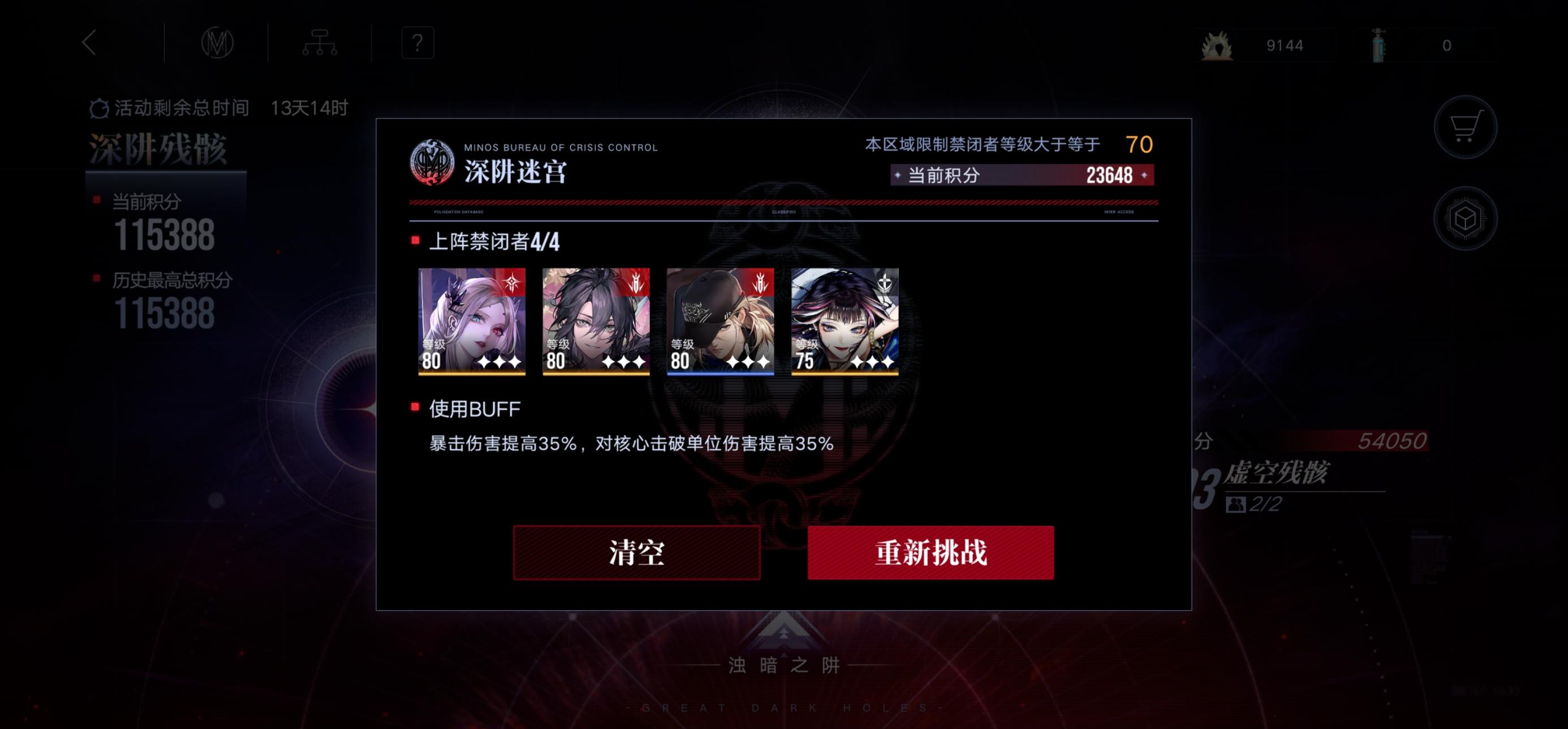 看了啊颓的视频说没有导演不太好打,想挑战一下,确实打了前几次都会缺伤害,也最后也是得益于破核增伤的Buff和一点手操,还是一波带走了。给没练/没抽导演的朋友们提供一个打法思路,望抛砖引玉。配置参考:2锁81级卓娅,9978亡者一专3锁81级NOX,9979能量套一专1锁81级爱缇,9997亡者三专2锁81级兰利,9797钢琴潘多拉一专5锁81级澈爹,9797能量套一专5锁81级女仆,