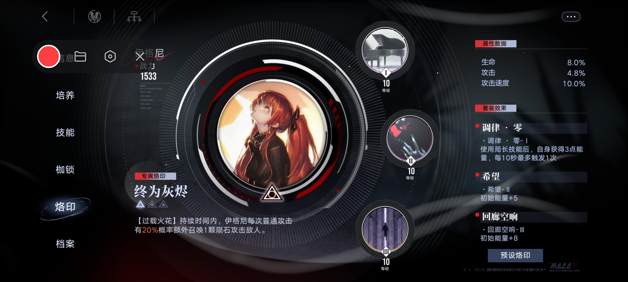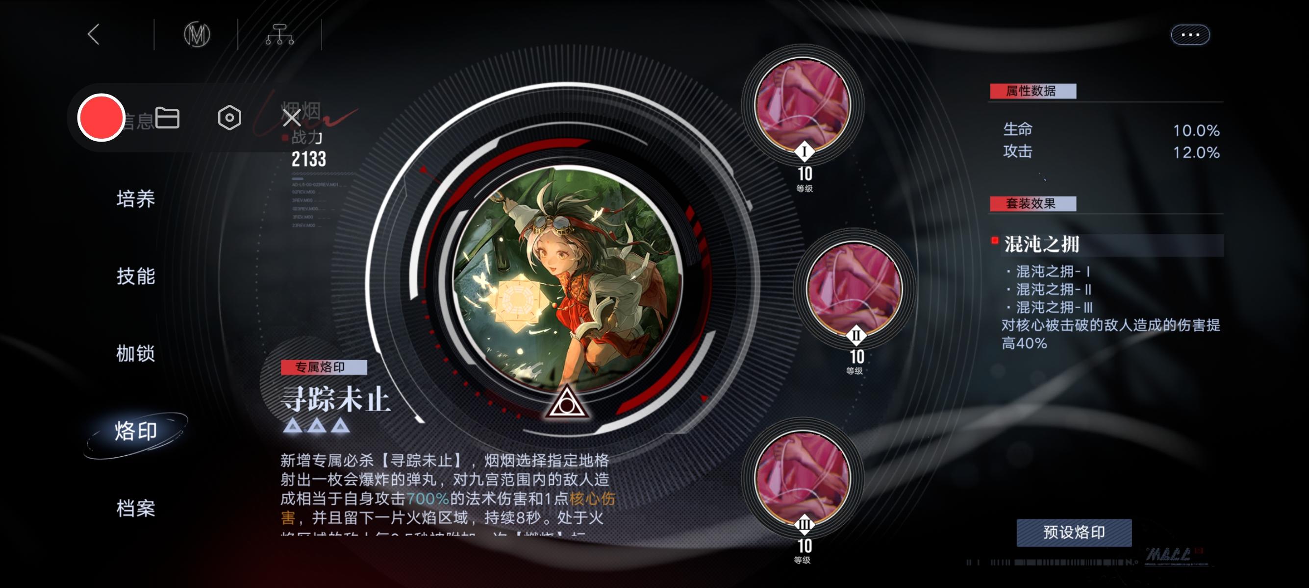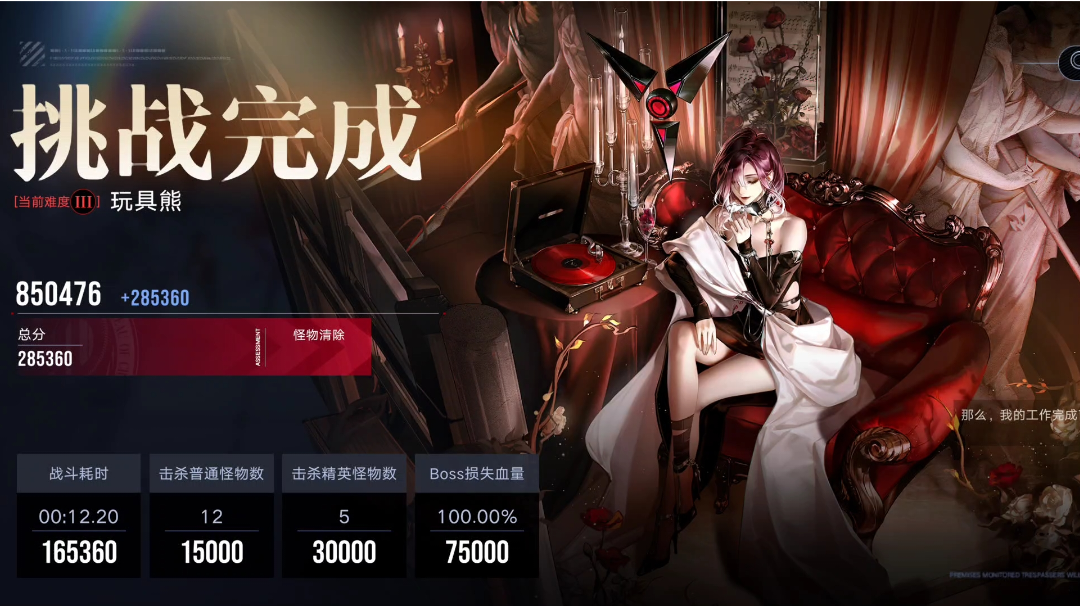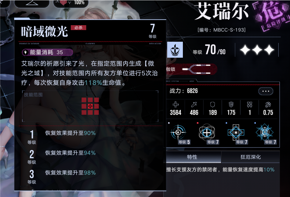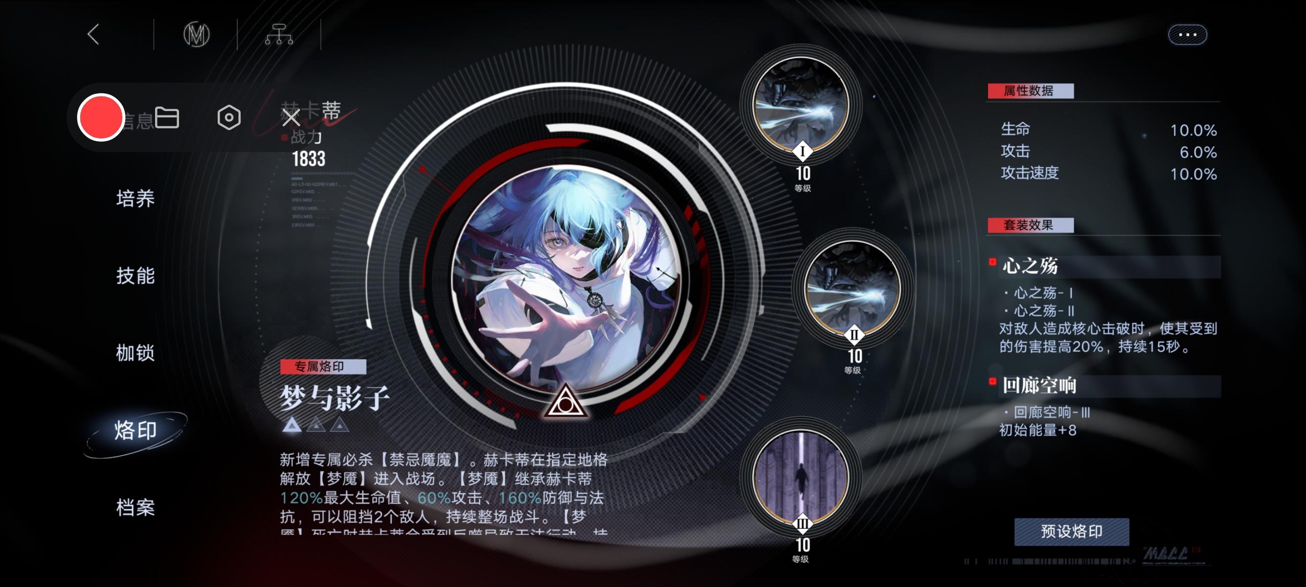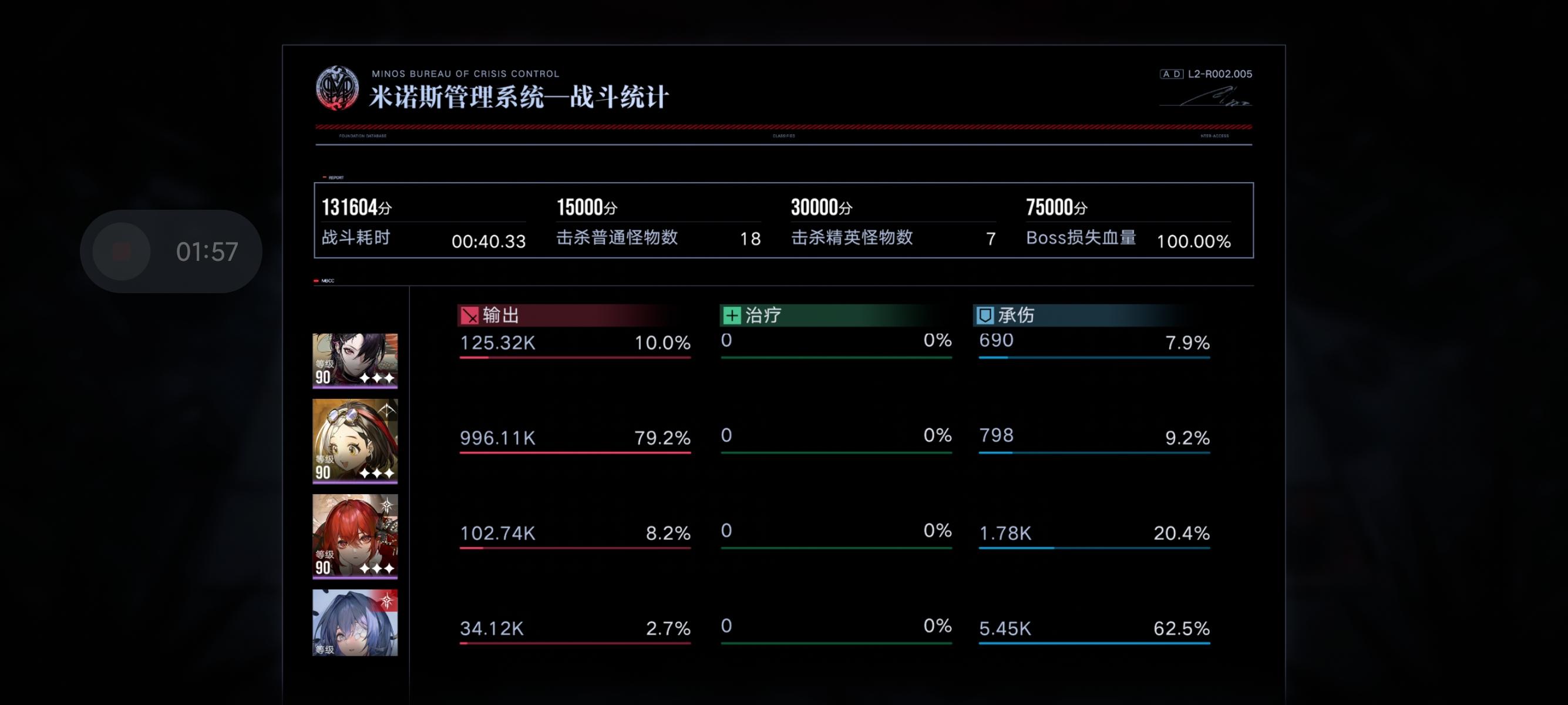 趁着燃烧buff还能打,下期估计就不行了。 ------- BUFF: 50%破核增伤,30%血 队伍: lv85蕾3锁1专9777,混沌之拥 lv85烟烟5锁1专7917,混沌之拥 lv80赫卡蒂3锁1专7179,梦魇+希望 lv80蓟1锁1专7719,正义+回廊 lv70艾瑞尔4锁0专7777,调律零+希望+终幕 lv70女仆5锁0专5757,心之殇+回廊