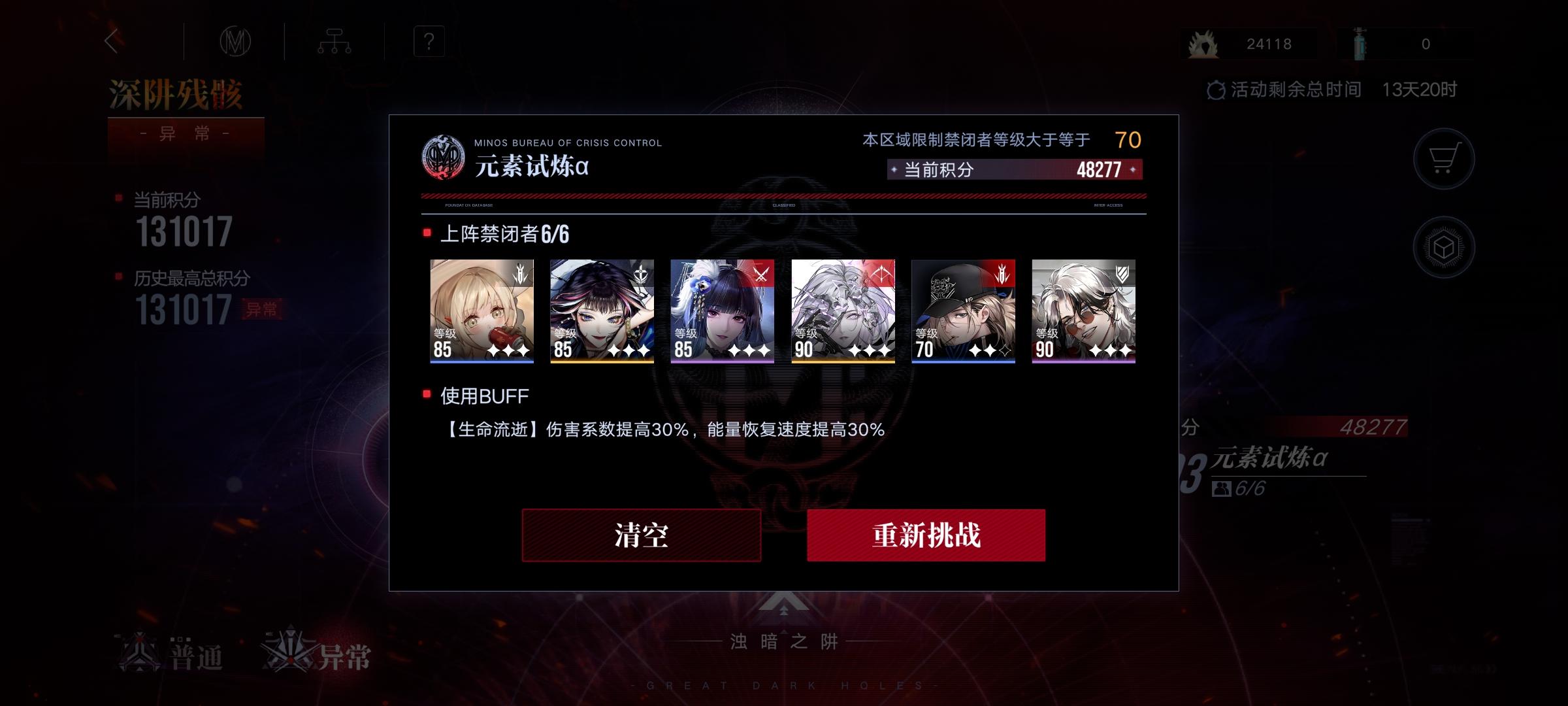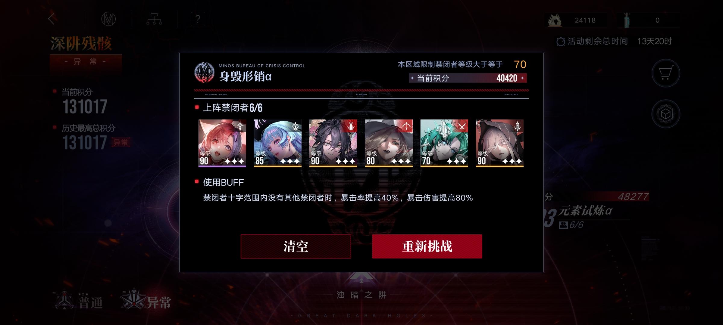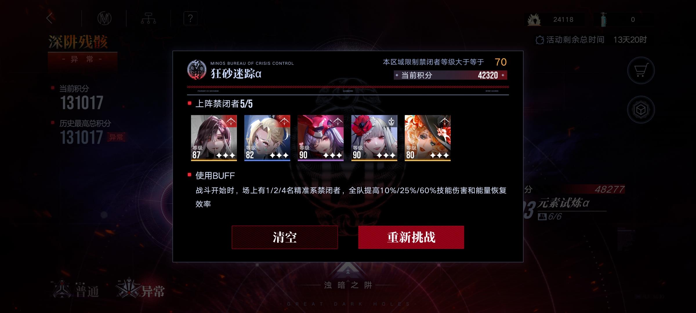 *没想到人生第一个满枷狂是这样获得的-------从头看点这里:小记:(本系列仅为个人推图纪实,无需照抄,谨慎参考)今天的第一件事情,就是先把唯一真神Nox等级拉起来。因为材料足够,所以直接升到了lv60,技能1717,并且装上了仅有的一个调率零。第10章里,有非常多的双核怪,并且范围破核的场景很多。于是也基本扼杀了堇的上场机会,澈的优先度变得非常之高。【浴火者】是本章特色精英,虽然