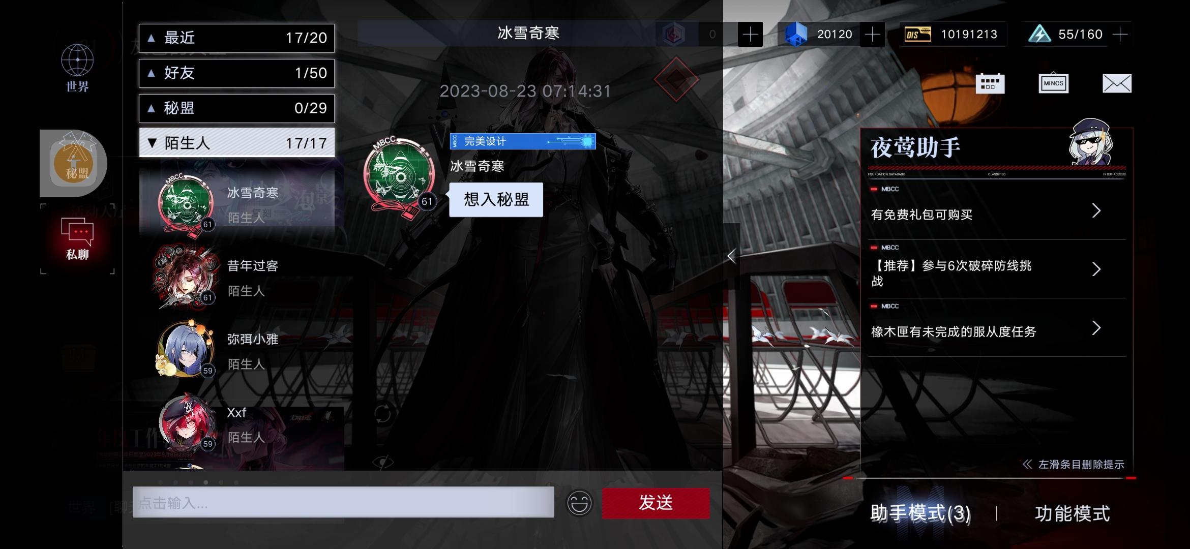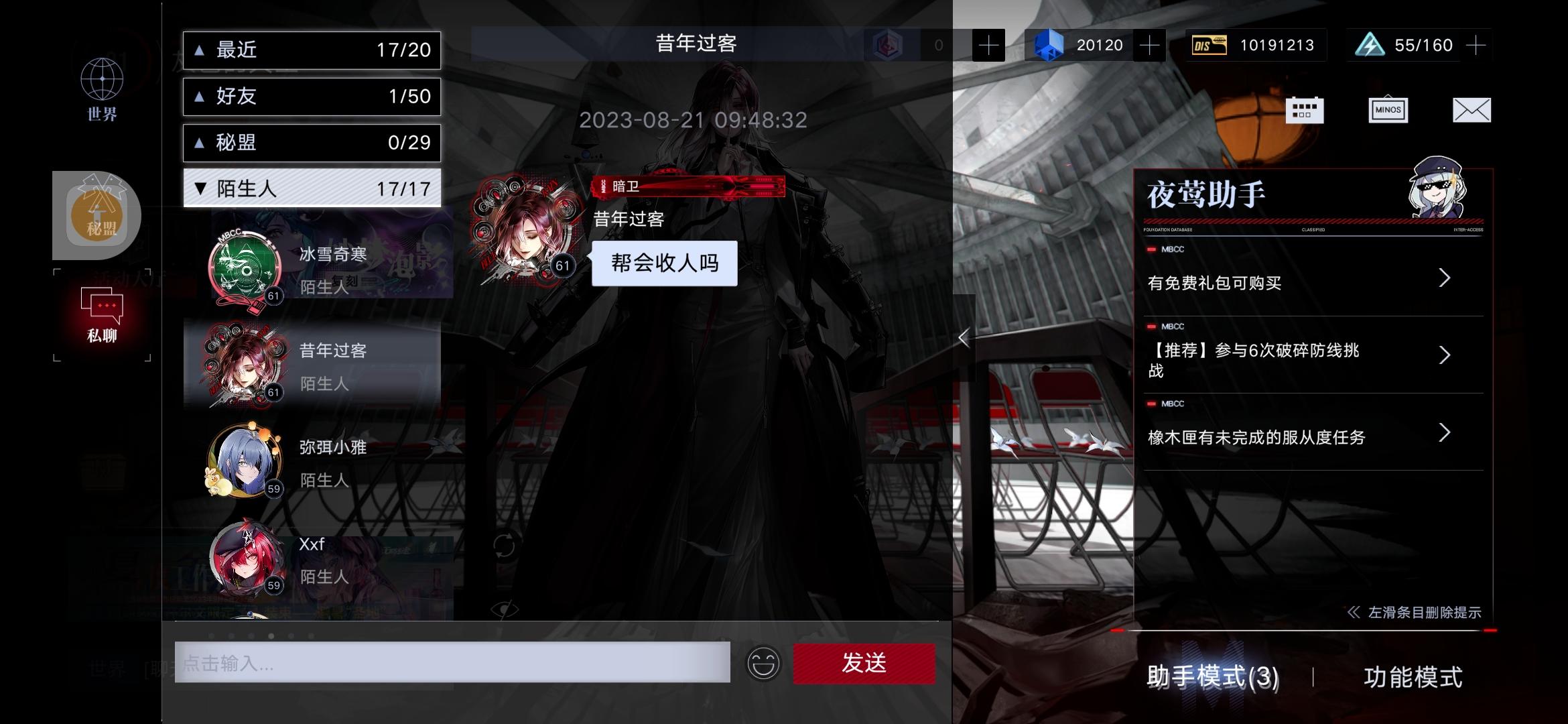 看公众频道聊天,顺手点了私聊,才发现有人私聊