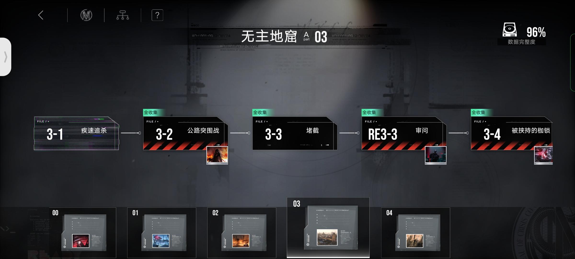 行动纪要—核心危机,第三张一直是百分之96的完成度。他上面显示着3-1没有收集完,但是我把所有选项选个遍还是不行,难受啊